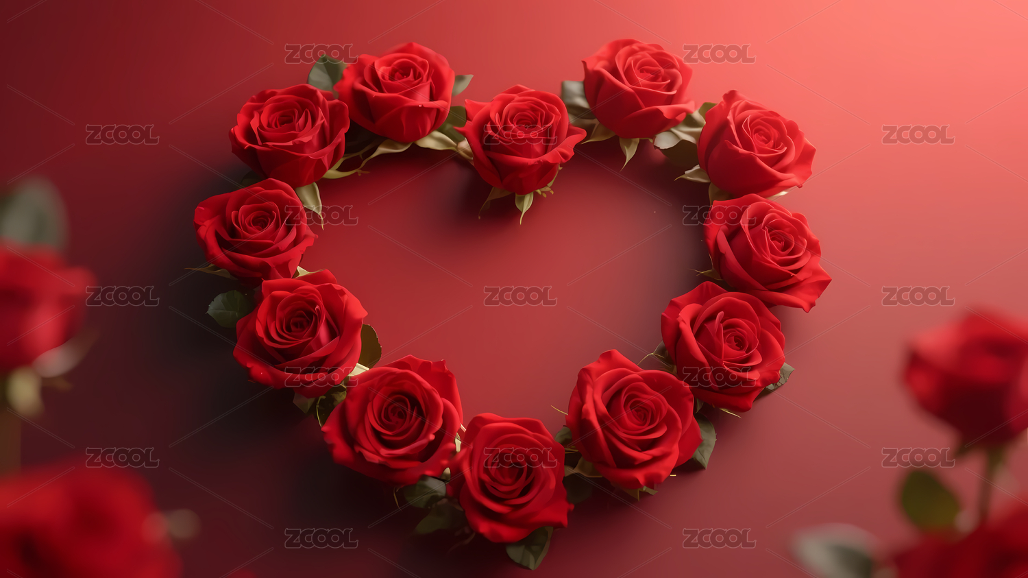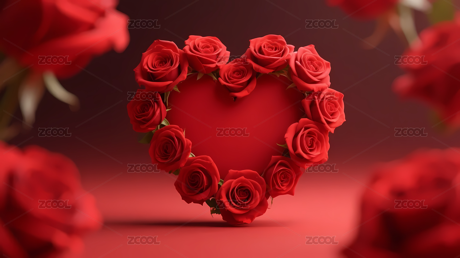 红玫瑰环绕浪漫心形
