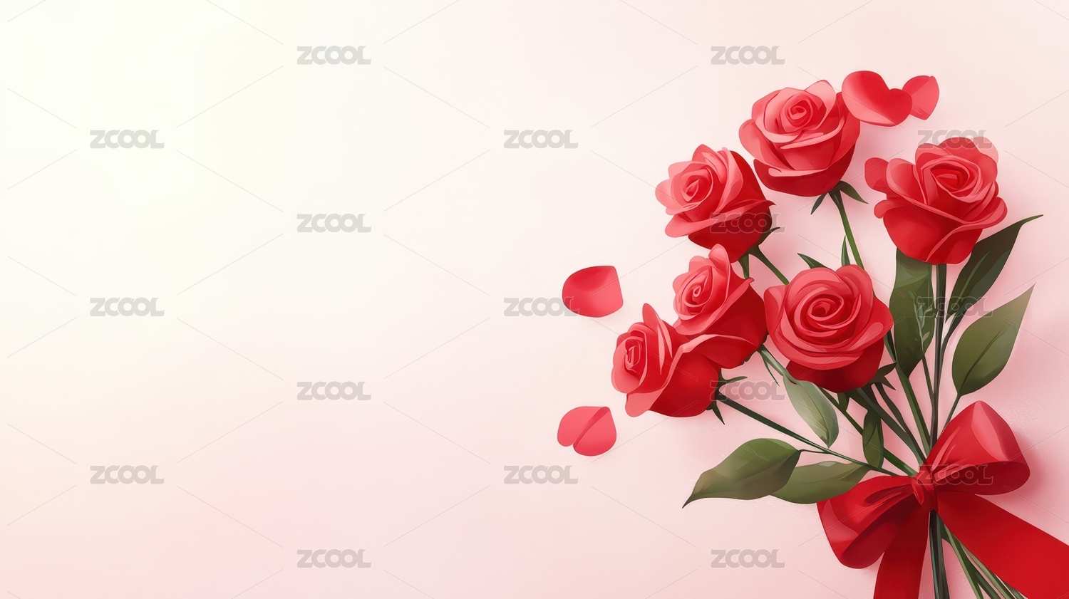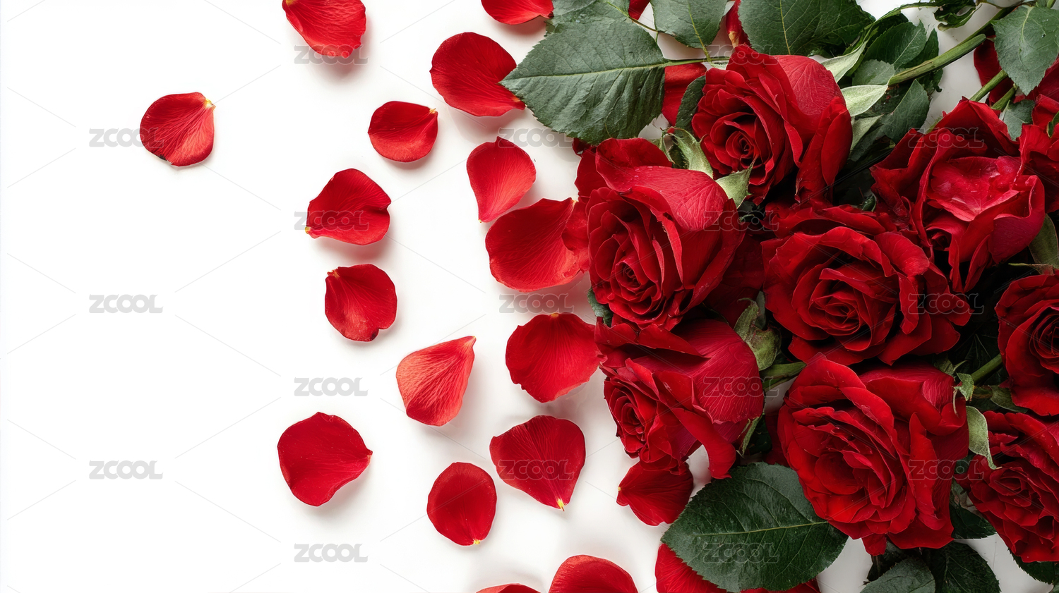情人节红色玫瑰花瓣墙面装饰