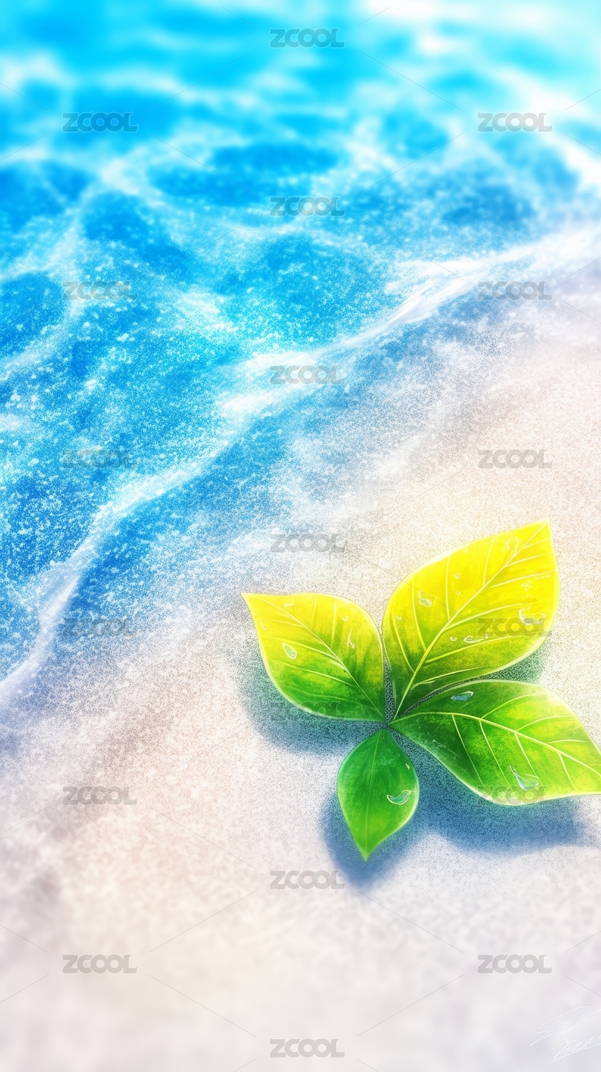海滩绿叶点缀