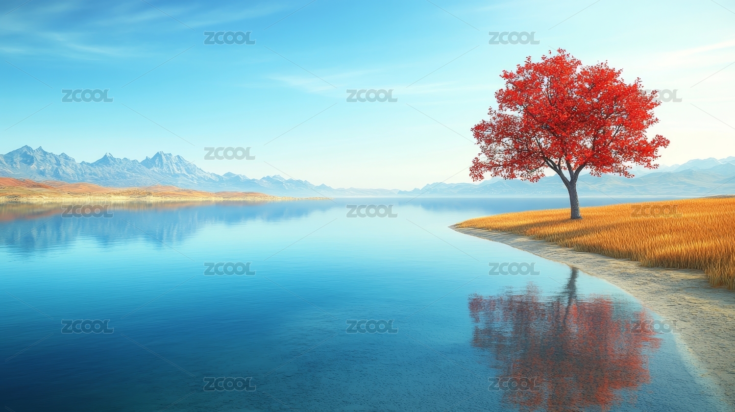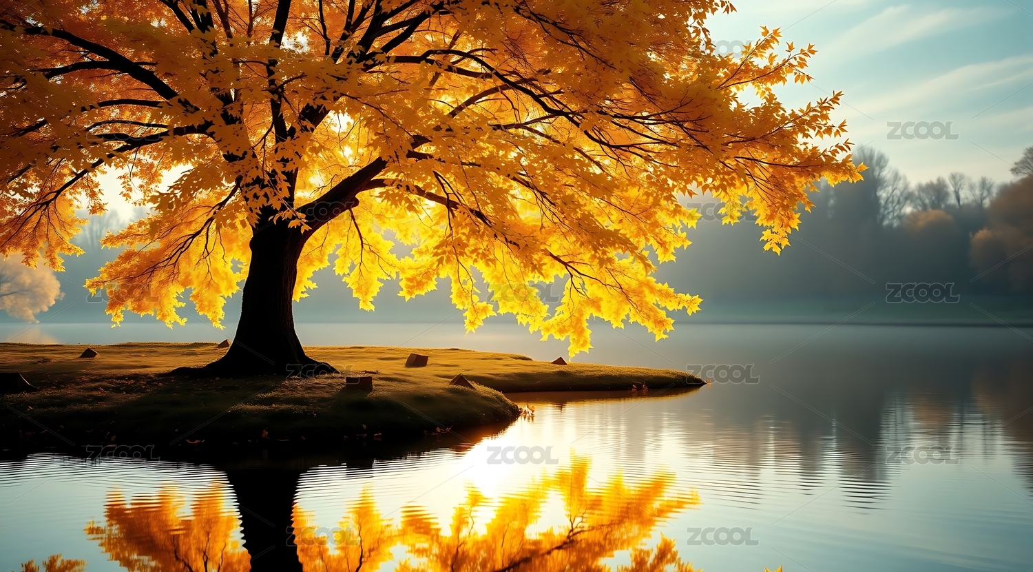 梦幻,唯美,自然,金色,宁静,树木,倒影,晚霞,山脉,水面