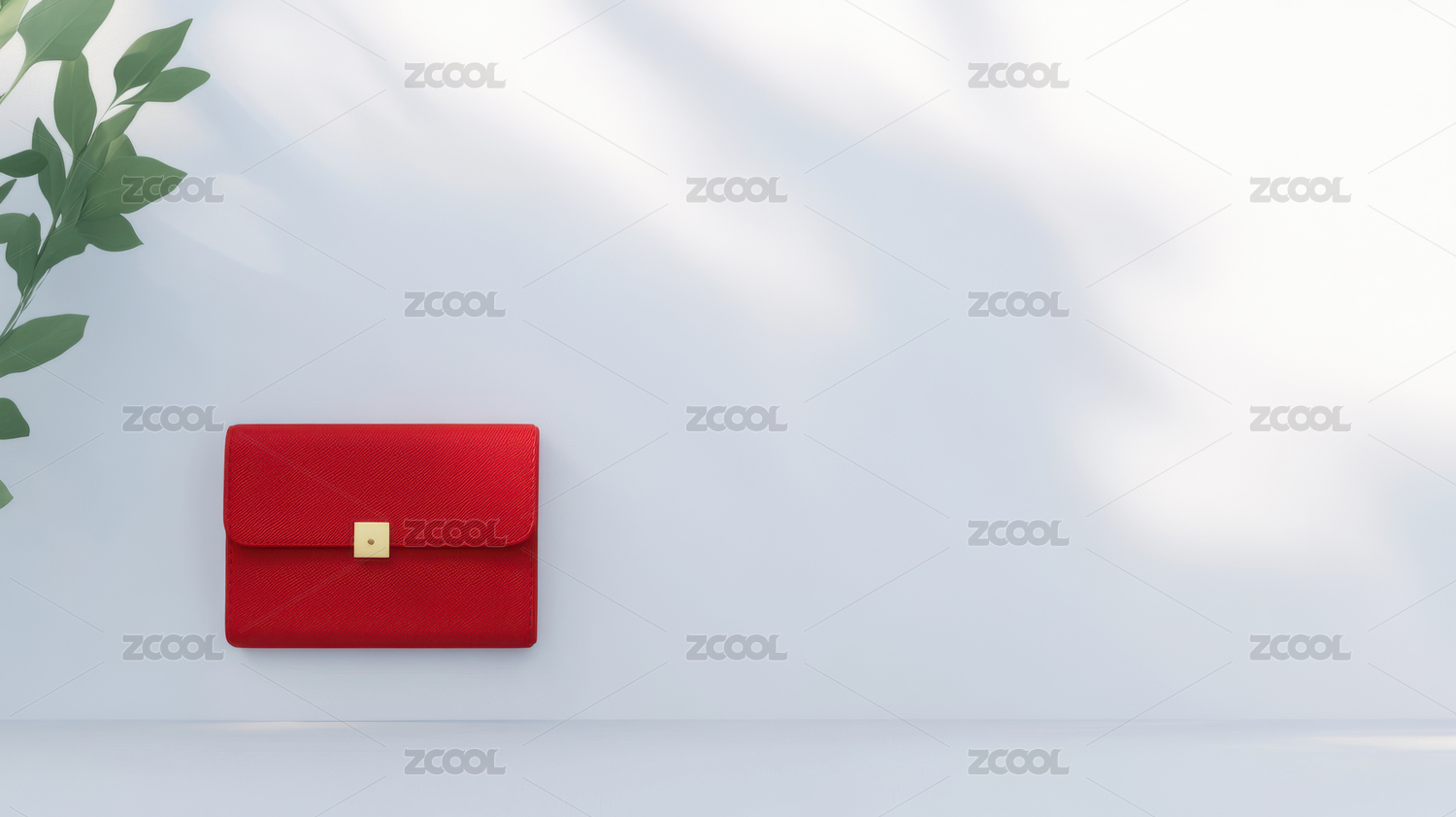 红色方形钱包与仙人掌