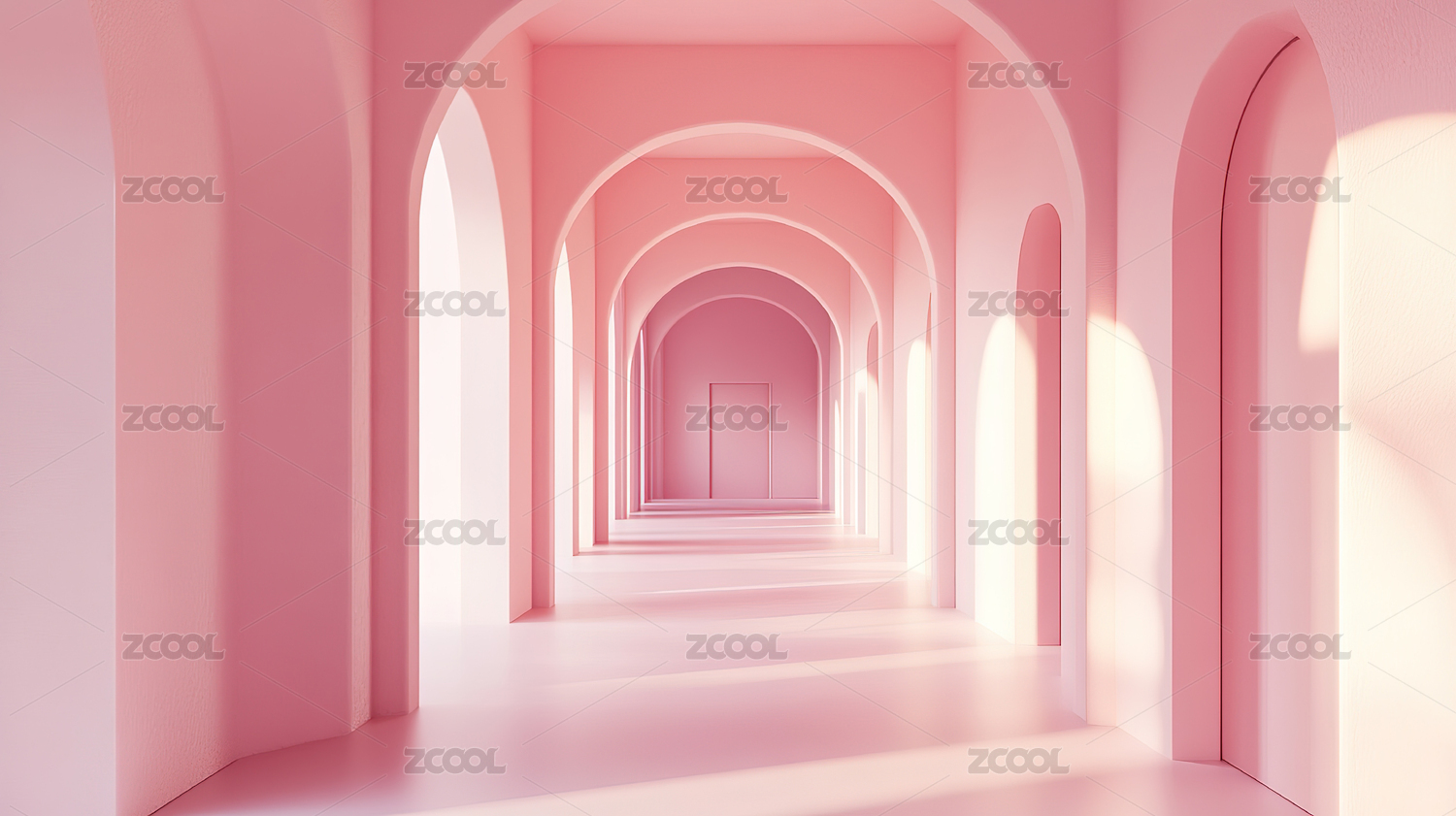 未来感,走廊,空间感,室内设计,光线效果,拱门,现代设计,几何形状,艺术装置,简约风格