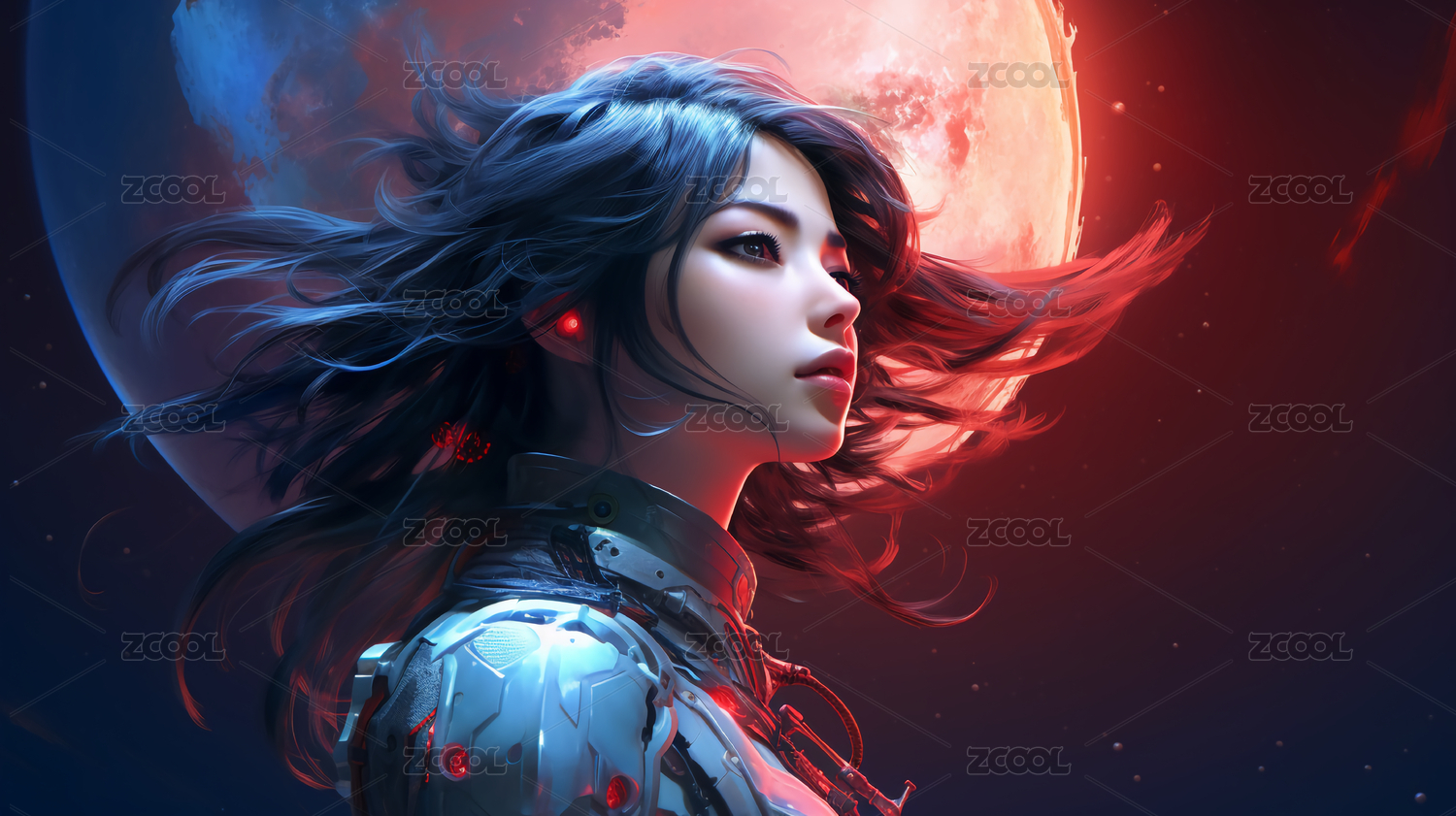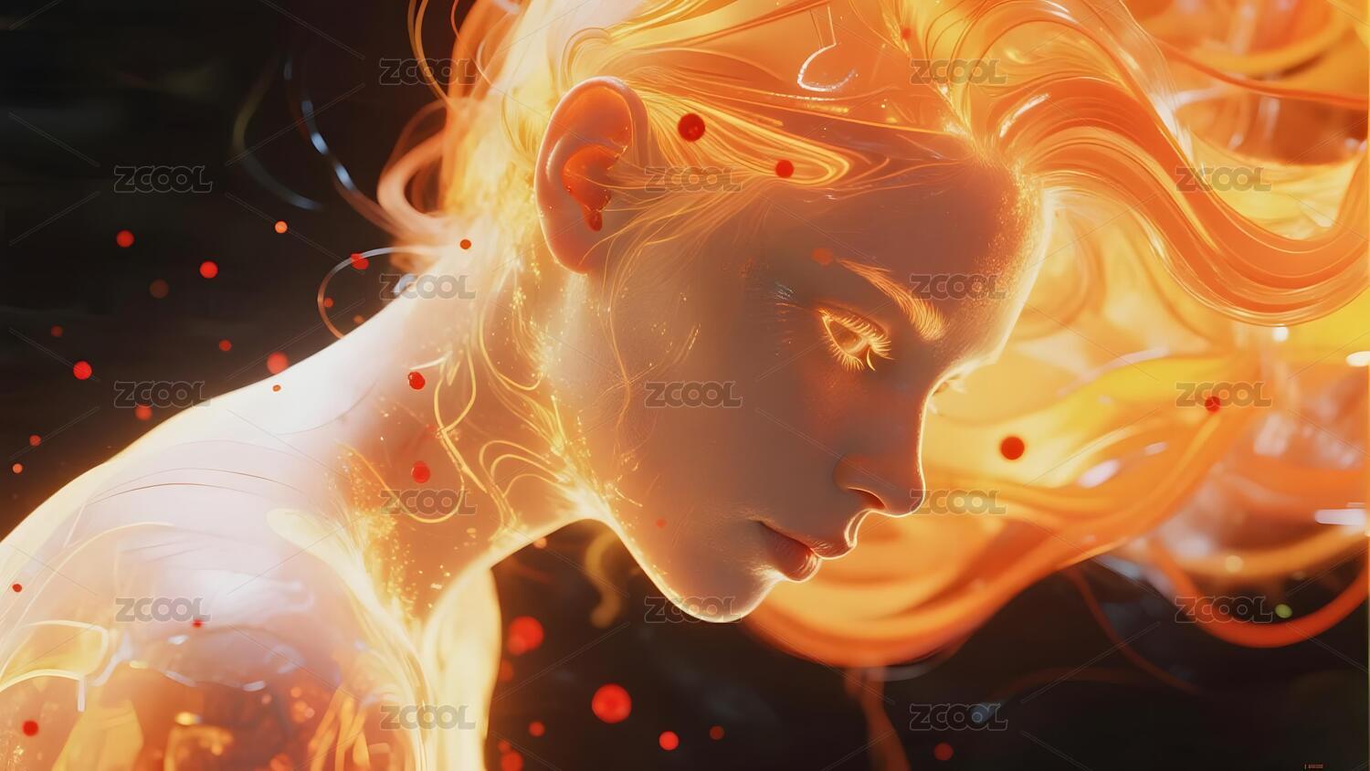 艺术,冰冷,神秘,眼神,长发,火焰,飘逸,红发,女妖,妖娆
