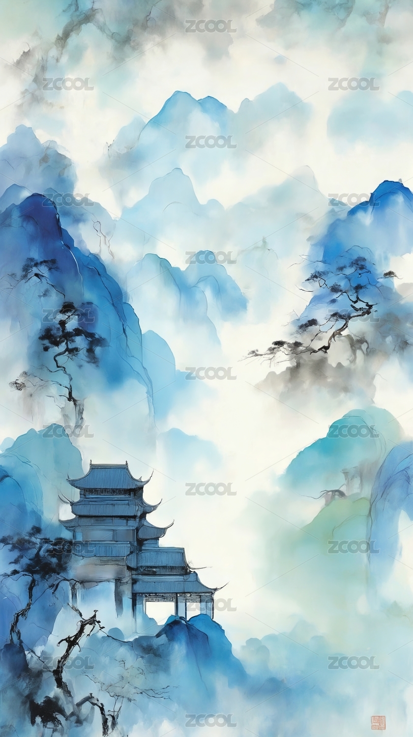 水墨山间古建筑