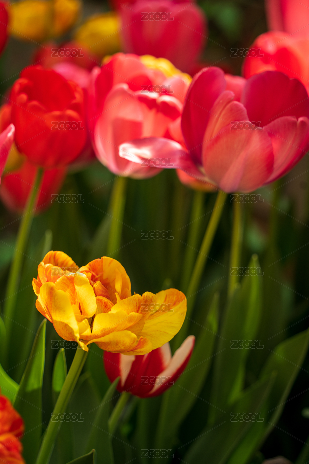 色彩斑斓的郁金香花丛