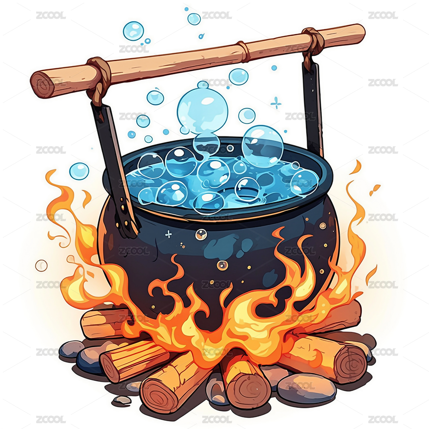 篝火上的提柄大锅