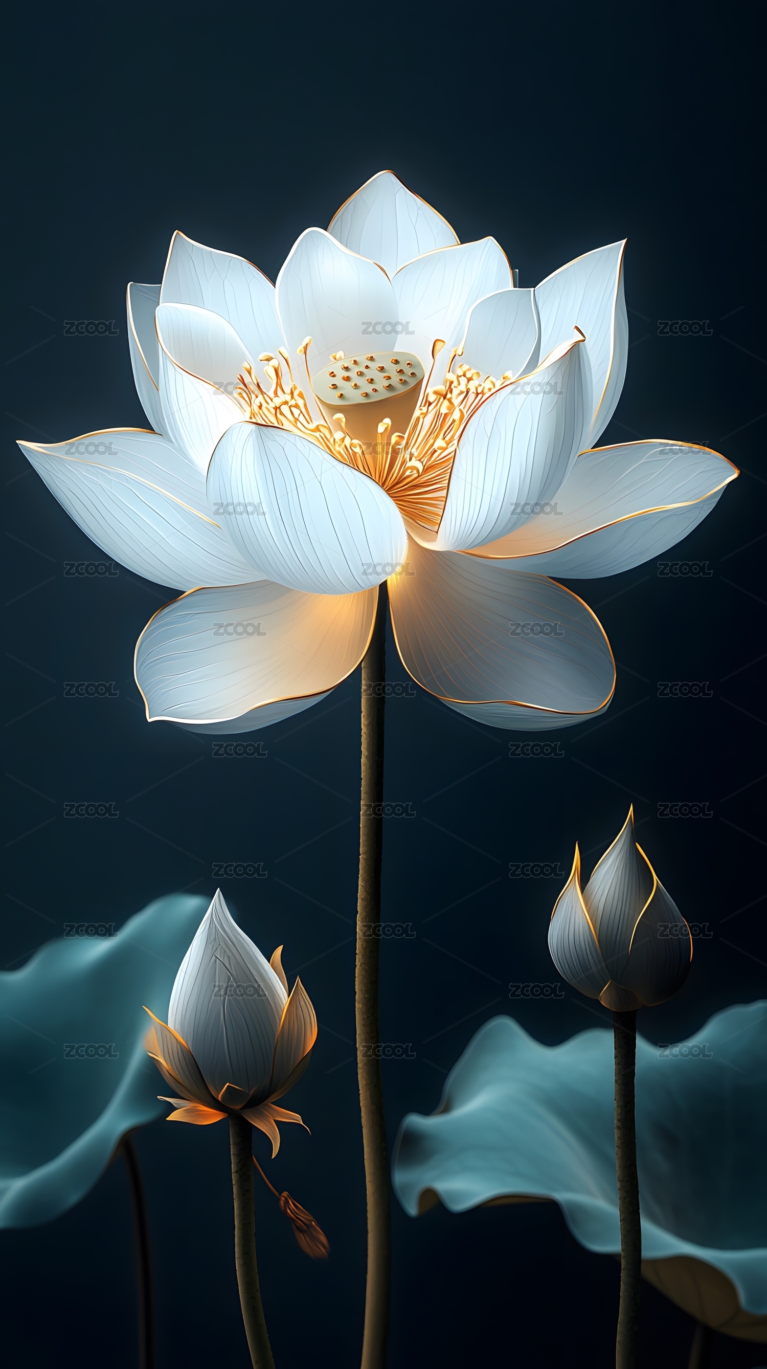 黑底X光透视彩色线条莲花荷花3D插画背景
