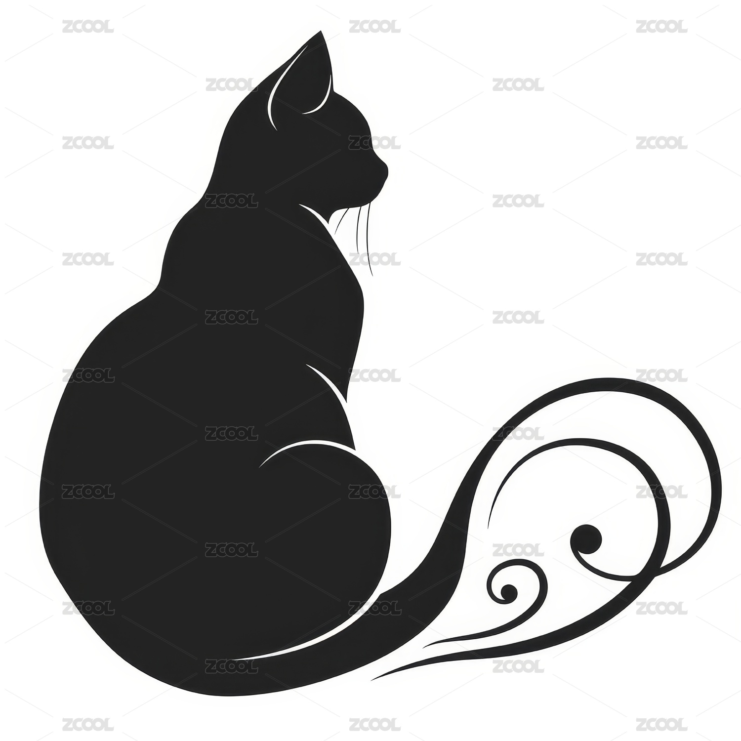 黑喵,黑猫,喵咪,猫咪,猫,插画,线条,简单背景,白色背景,女巫