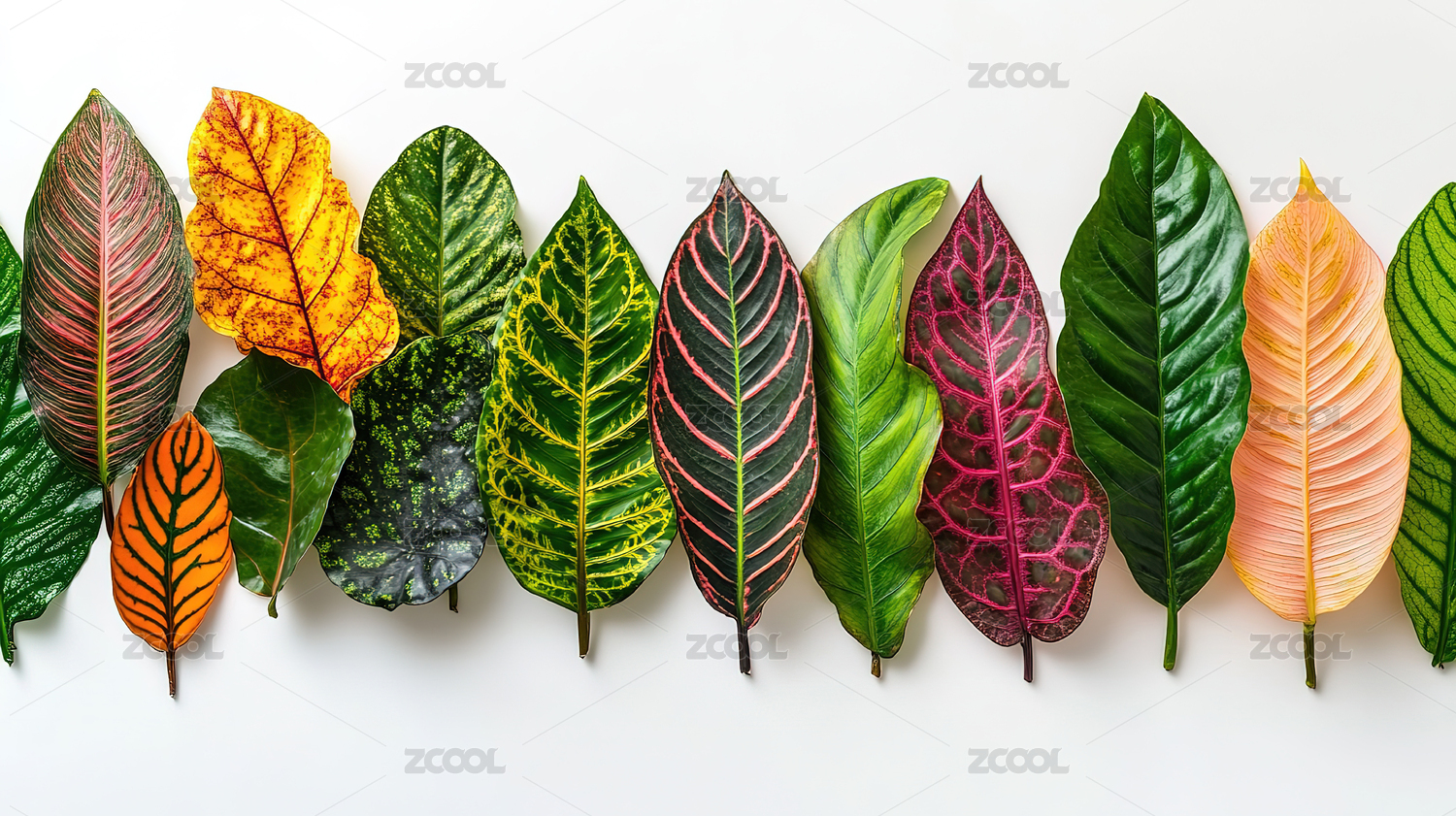 不同形状的绿色叶子排列
