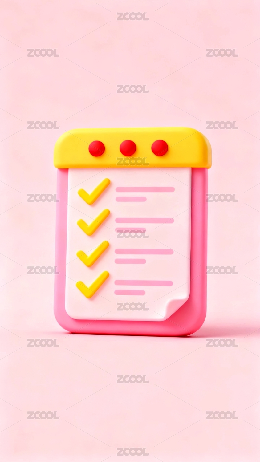 粉色卡通记事本3D渲染图