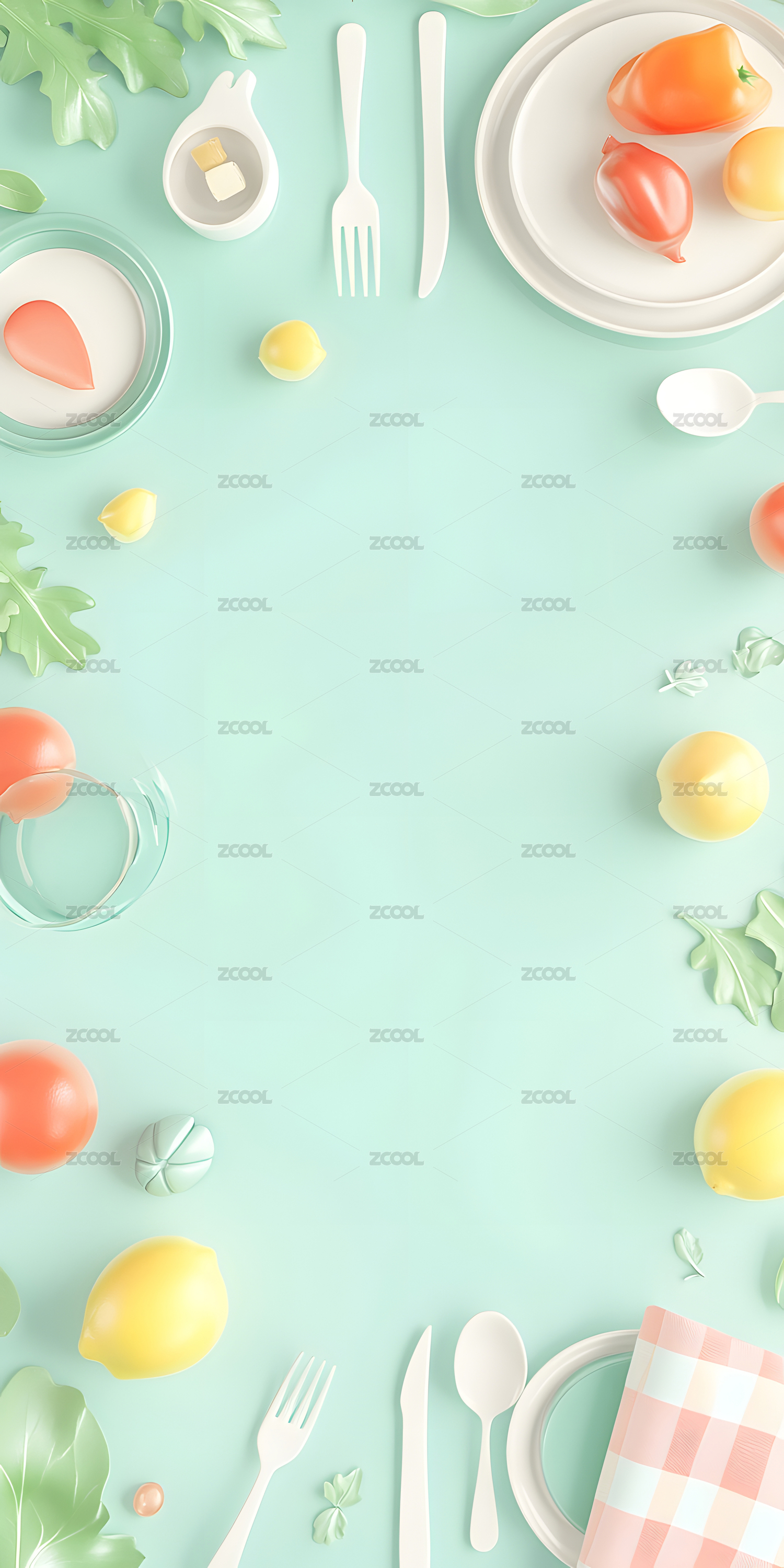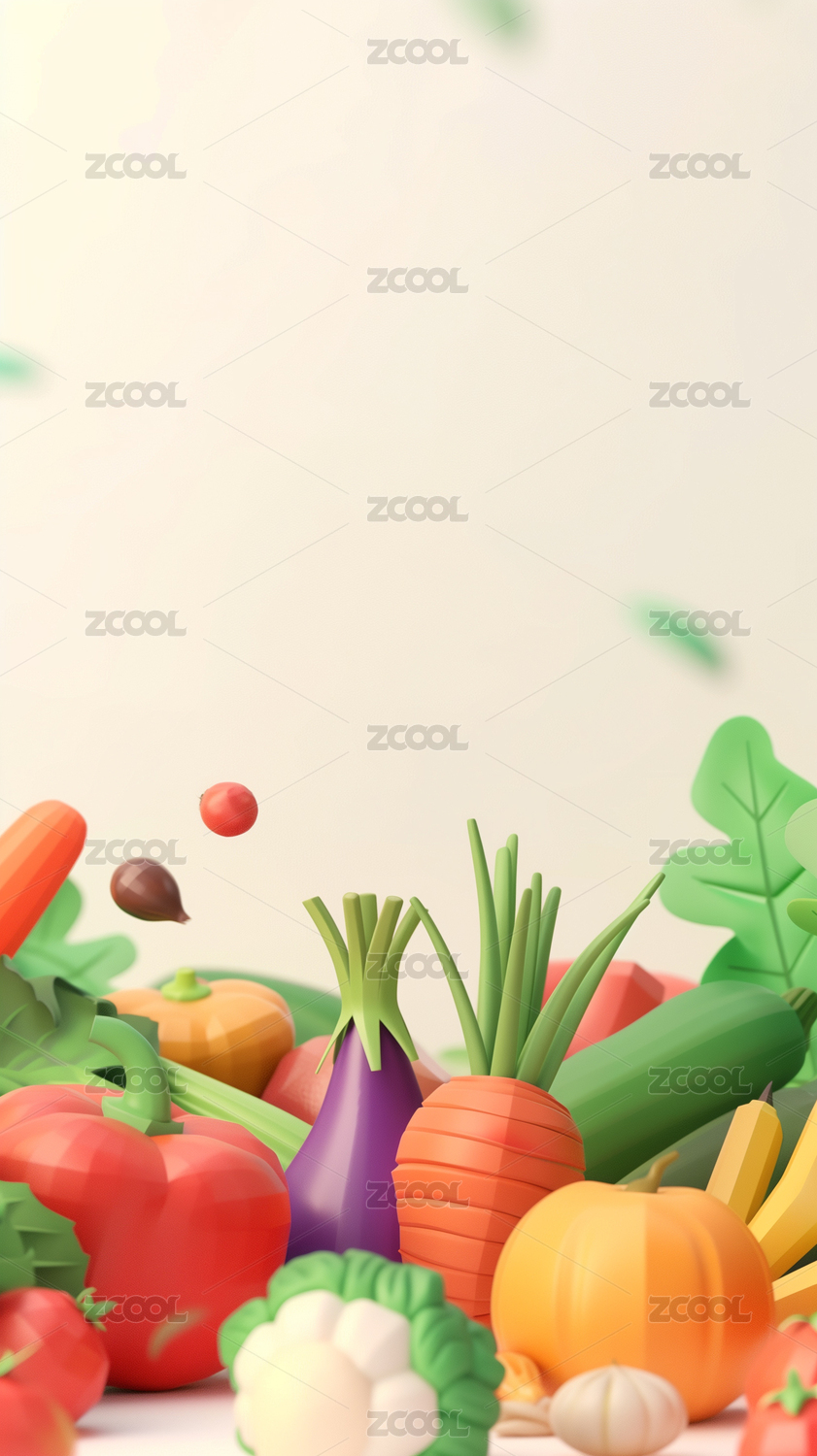 桌子上的彩色蔬菜3D可爱卡通玩具模型背景