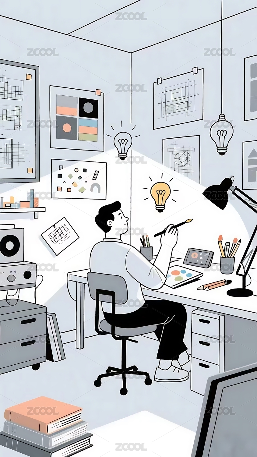 卡通,可爱,场景,温馨,简单,极简,办公室,蓝色,商务,办公