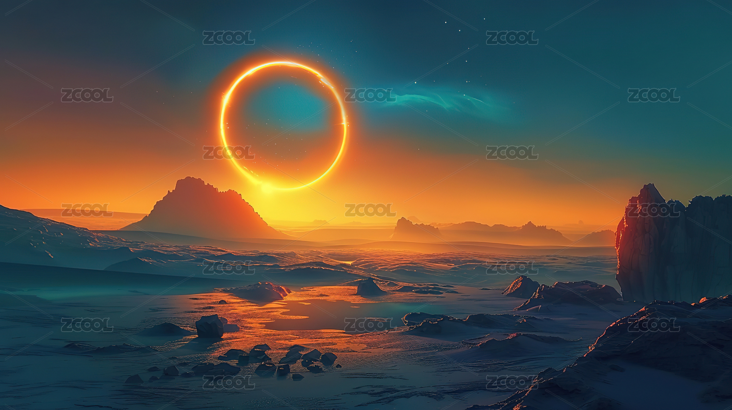 梦幻海洋上的金色光环