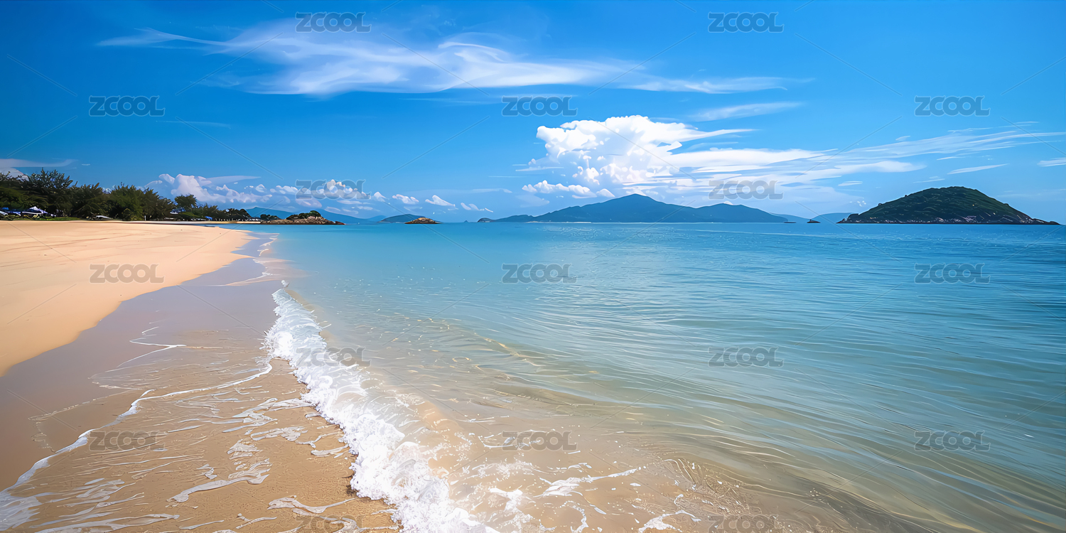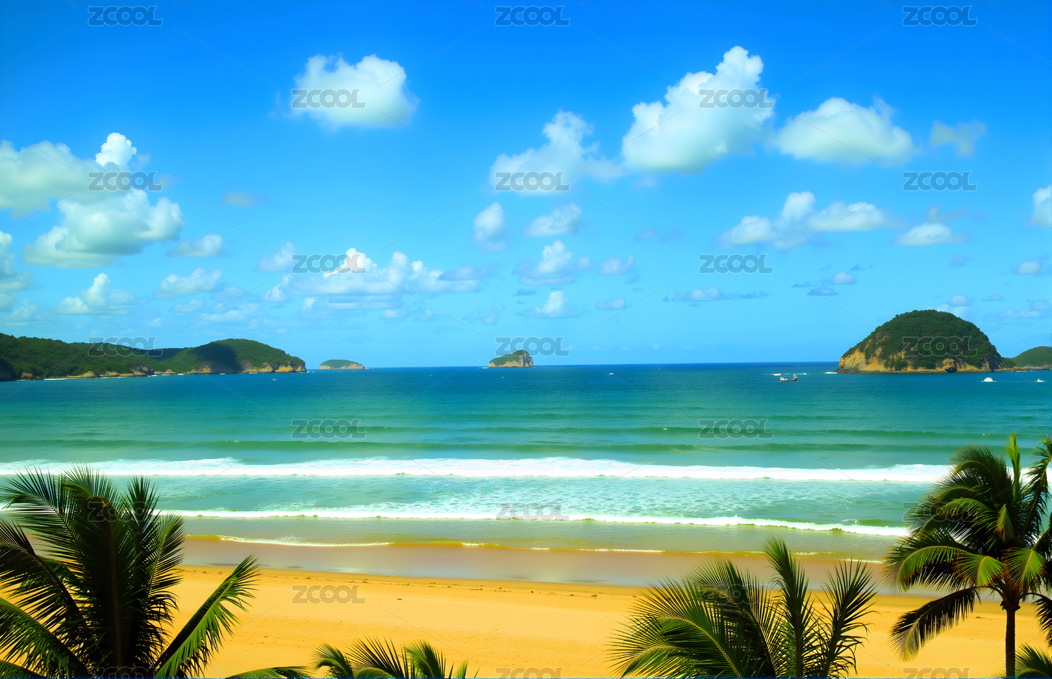海洋,海平线,风景,插画,蓝天,白云,大自然,环境,环保,三维