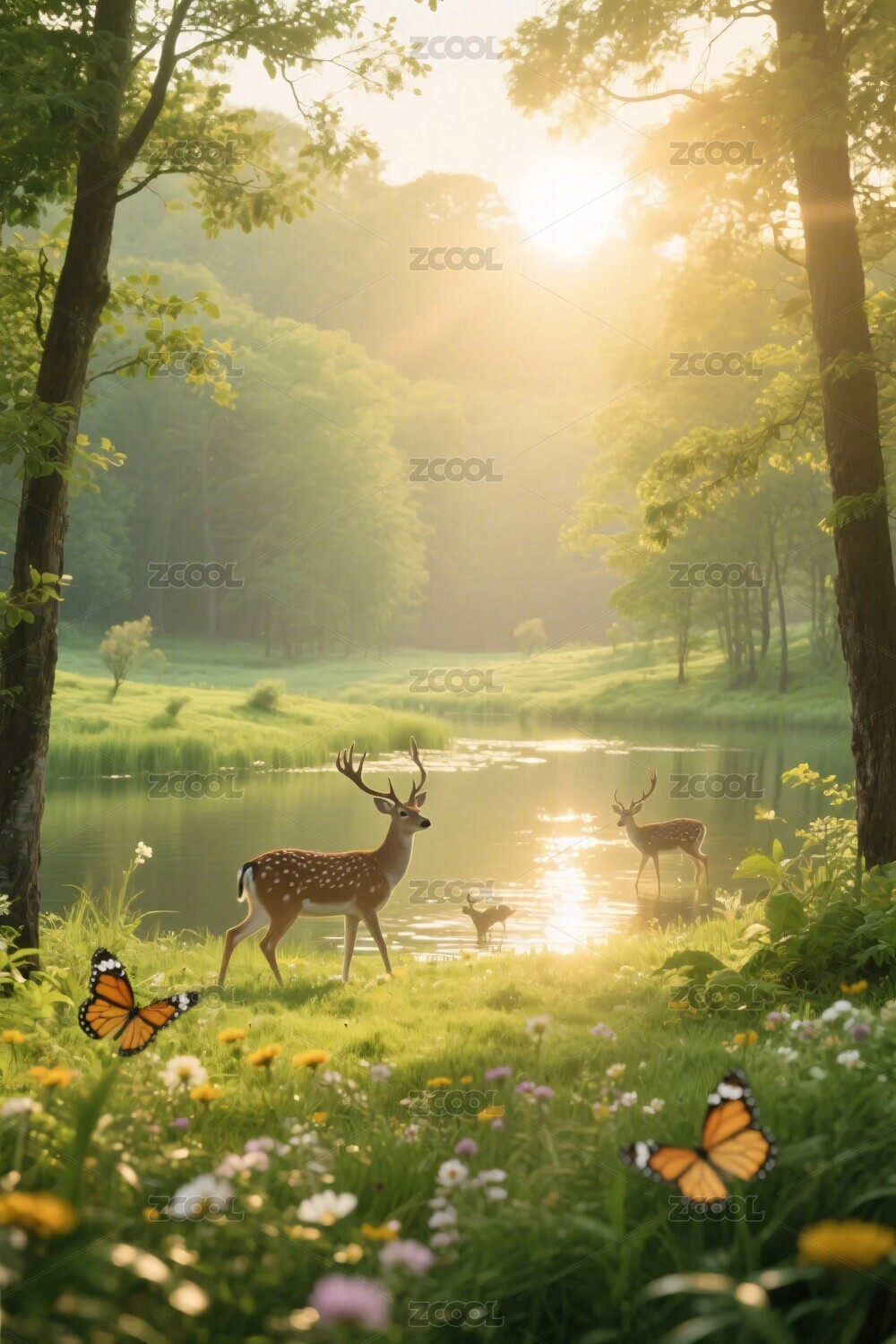小鹿,樱花,森林,春天,阳光,唯美,治愈,清新,自然,动物