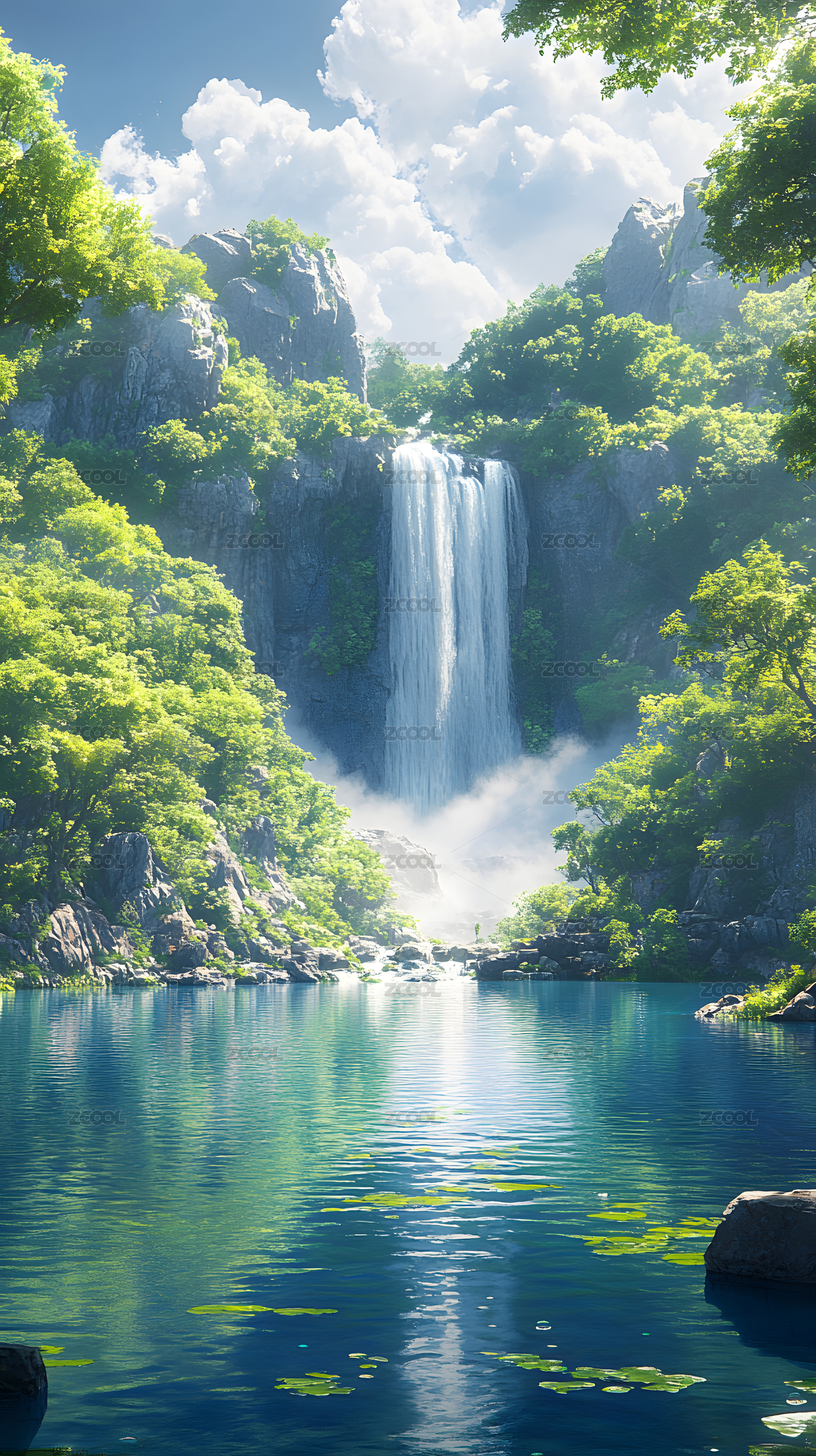 岩石,树木,自然,水,瀑布,溪流,花朵,植物,绿色,环境