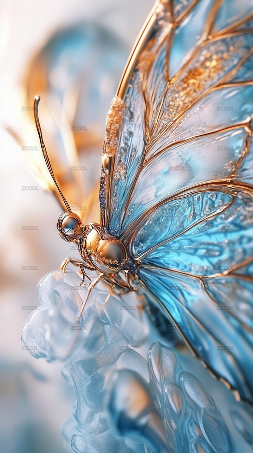 蓝色,艺术,梦幻,色彩,蝴蝶,翅膀,金色,精美,质感,光泽