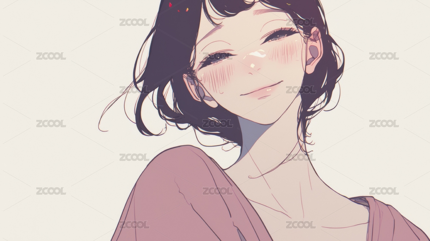 微笑的短发女孩插画