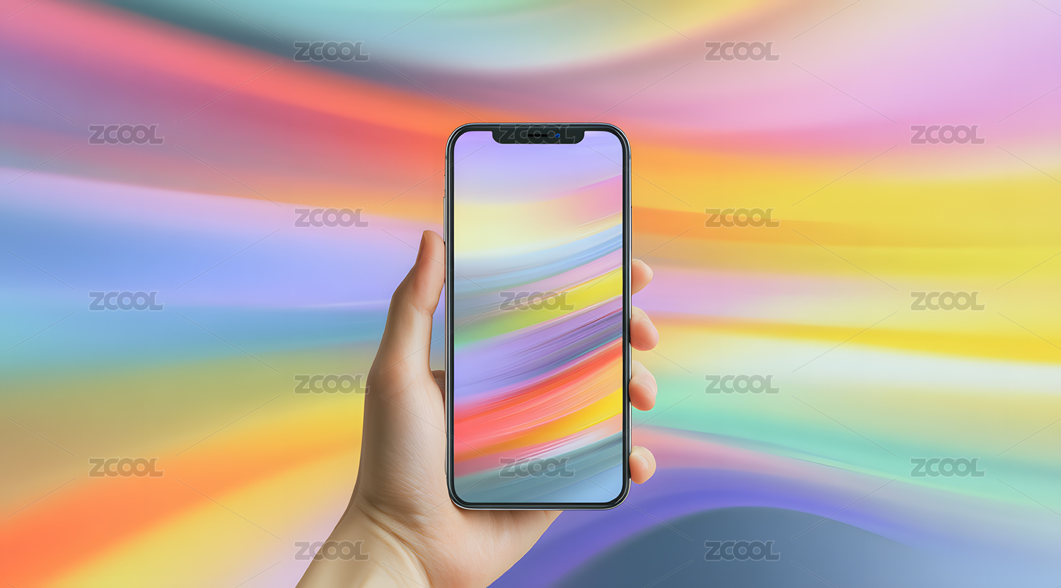 渐变彩色背景上手持智能手机