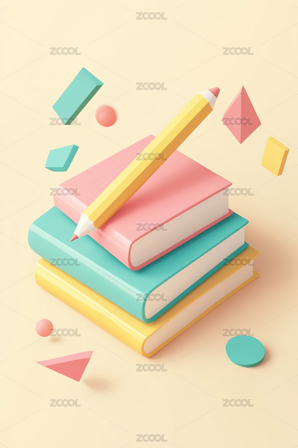 翻开的书本星星纸张蓝色背景开学季3D插画