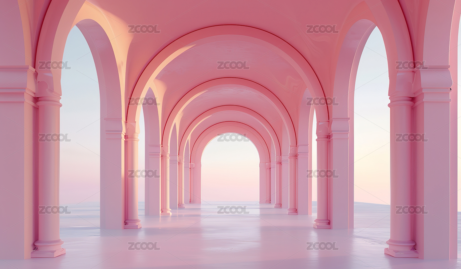 粉红色背景下的空走廊