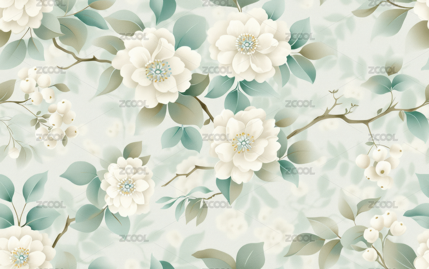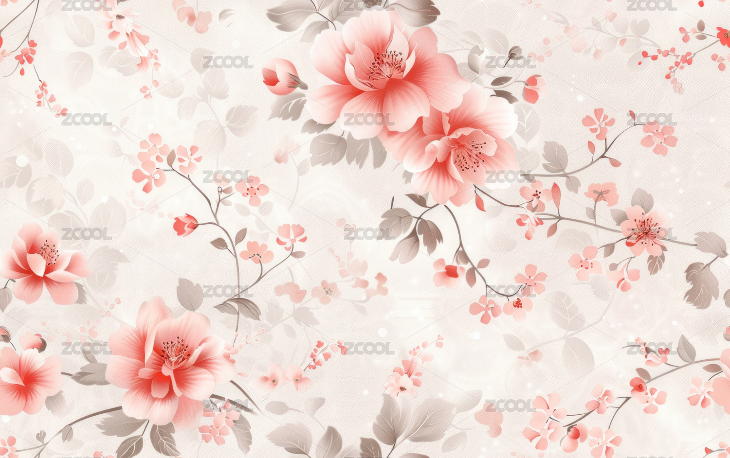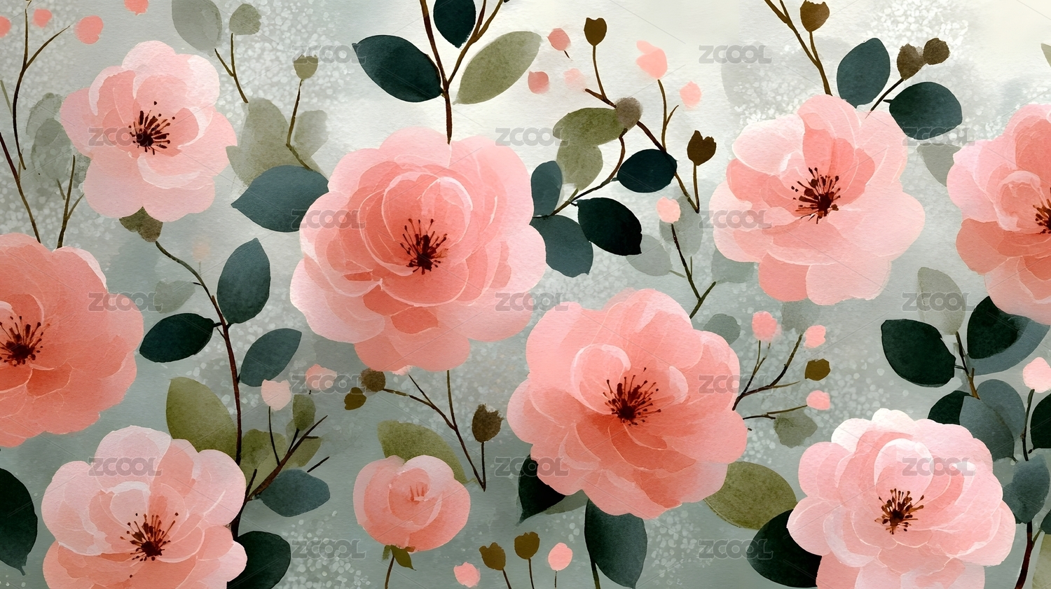 红色,绿叶,花朵,装饰,图案,枝干,花卉,自然,雅致,艺术