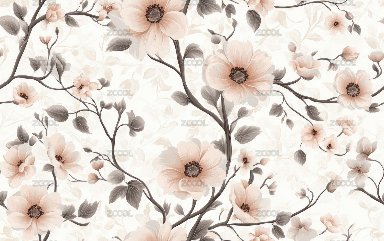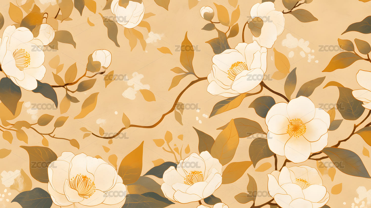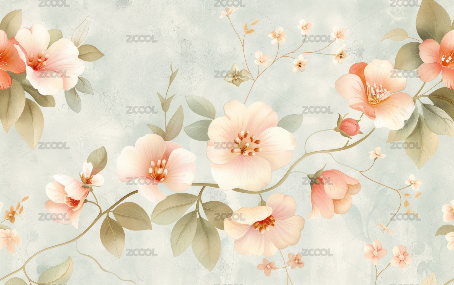 红色,绿叶,花朵,装饰,图案,枝干,花卉,自然,雅致,艺术