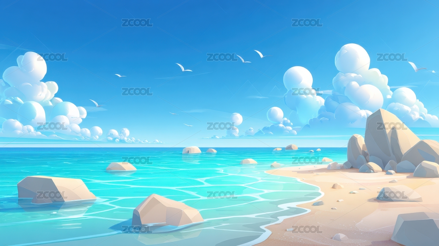 海面的浪花和沙滩,蓝天和阳光,大海背景