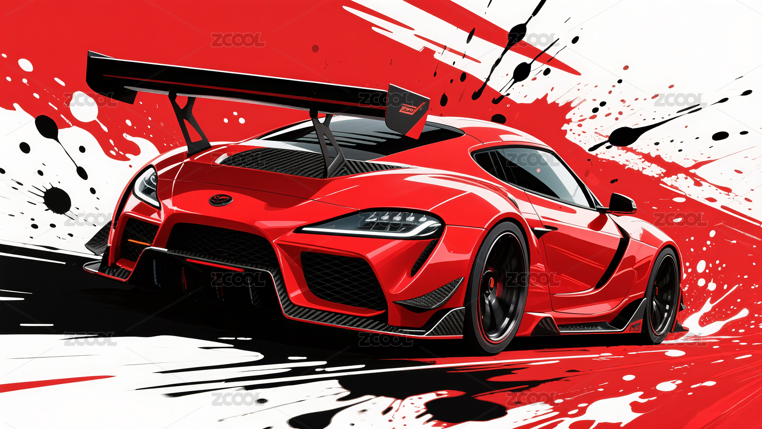 白色,跑车,卡通,插画,汽车,翼板,前灯,轮毂