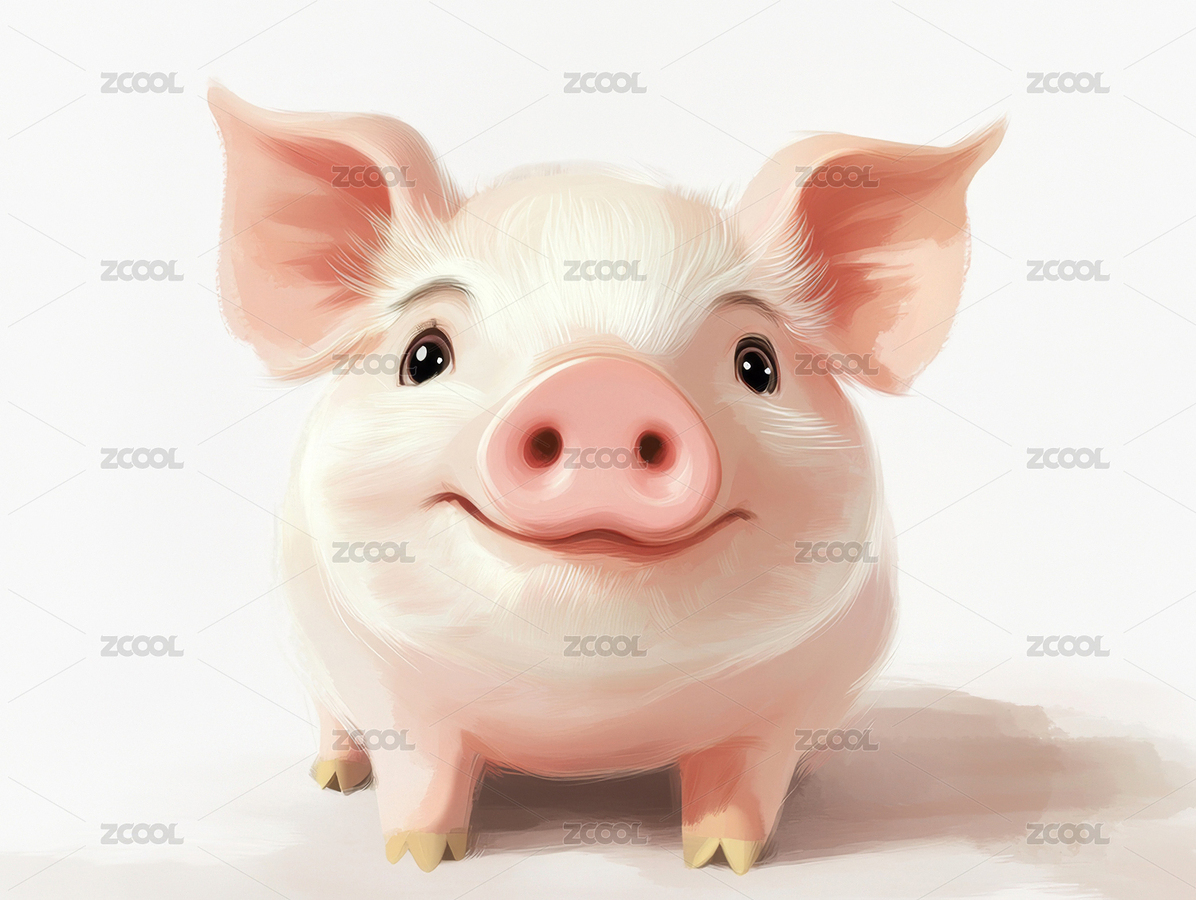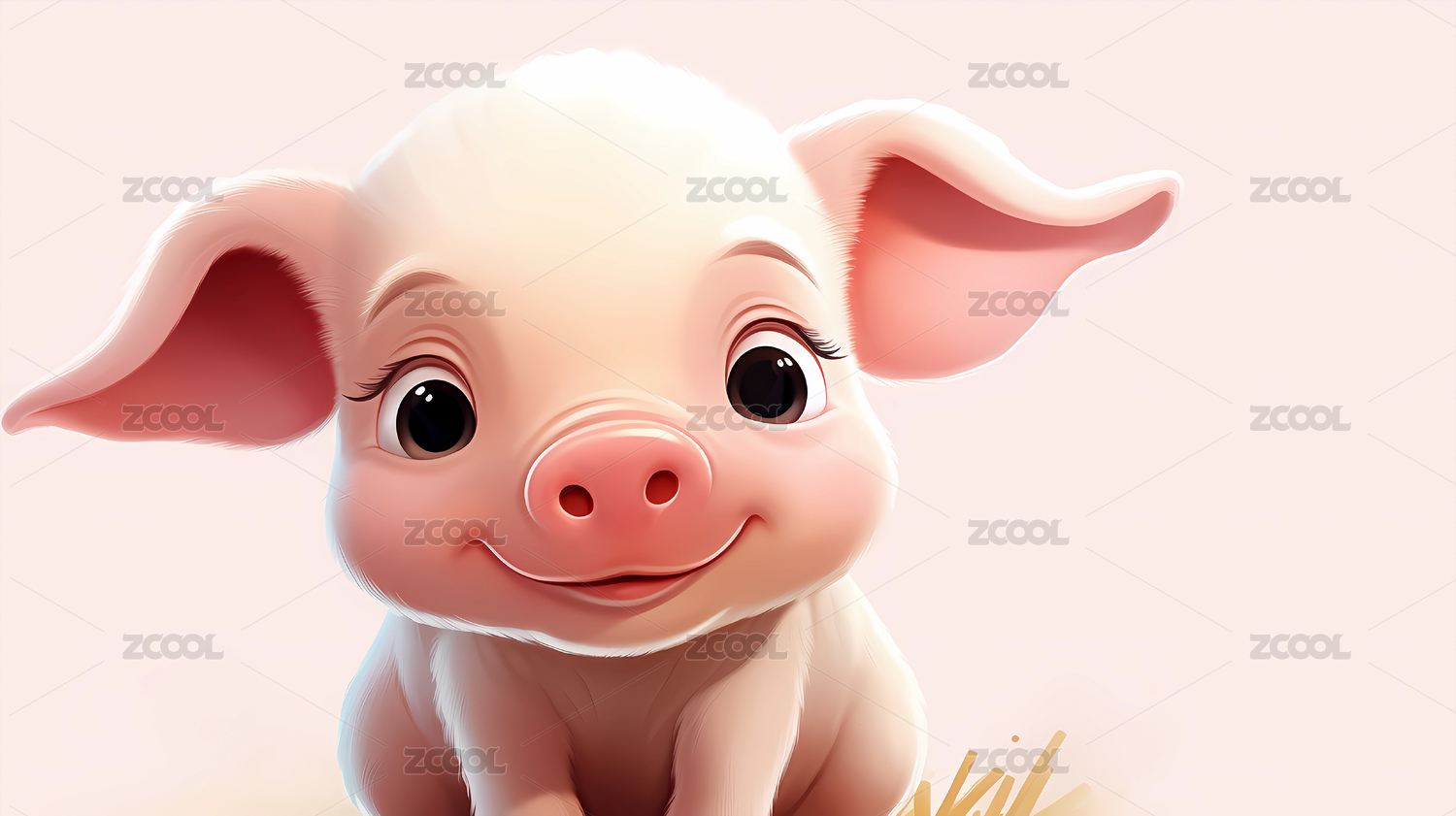 小猪,粉红色,微笑,卡通,插画,耳朵,鼻子,眼睛,毛发