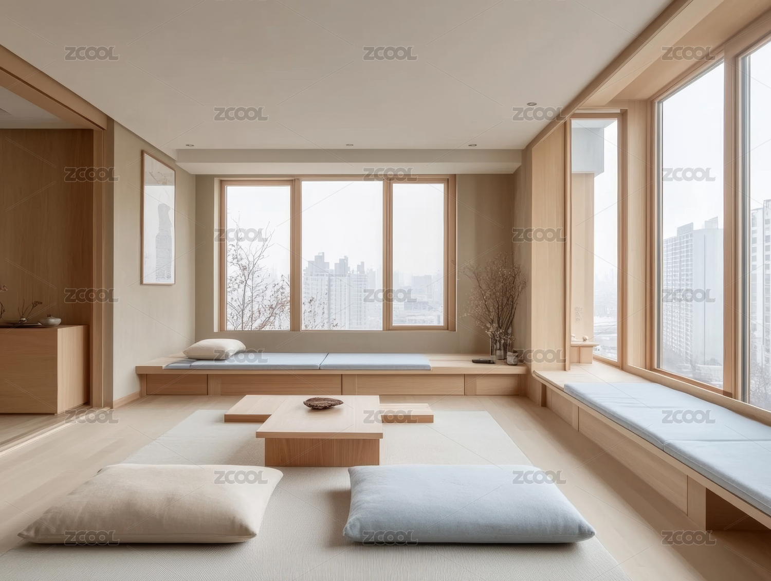 室内,设计,简约,风格,榻榻米,枕头,木制,家具,绿植,自然光
