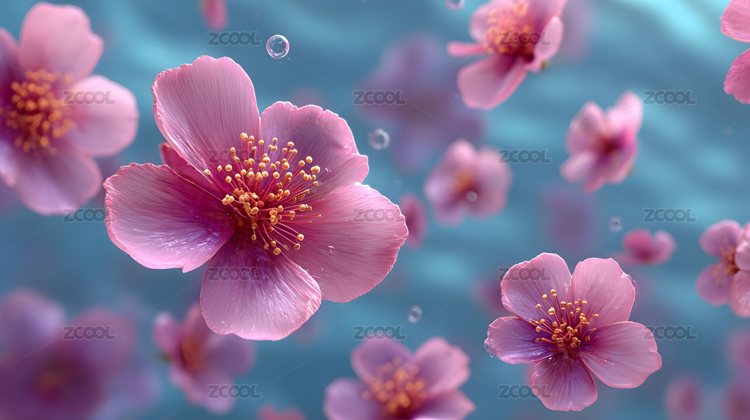 花朵,水珠,粉嫩,清新,浪漫,春天,柔和,光泽,梦幻,背景
