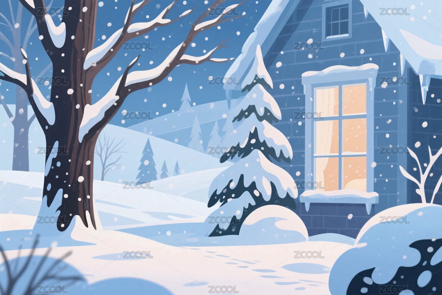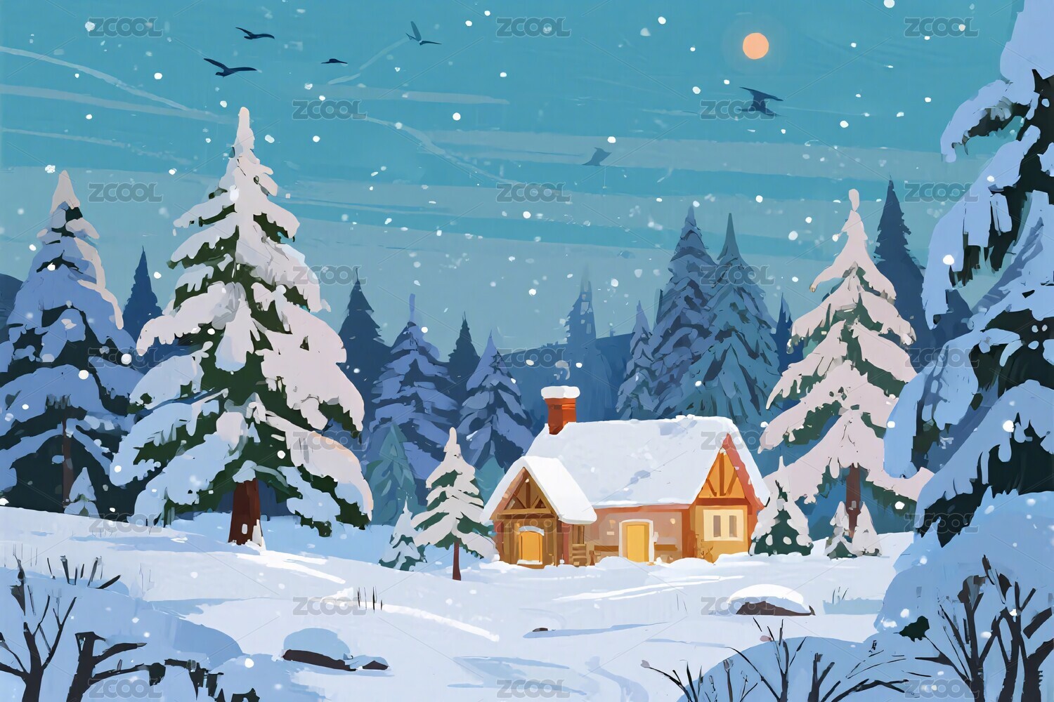 宁静,浪漫,夜晚,树木,美丽,梦幻,插画,风景,建筑,漂亮