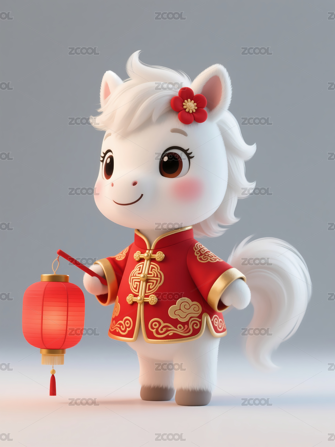 穿红色唐装的卡通马手持灯笼
