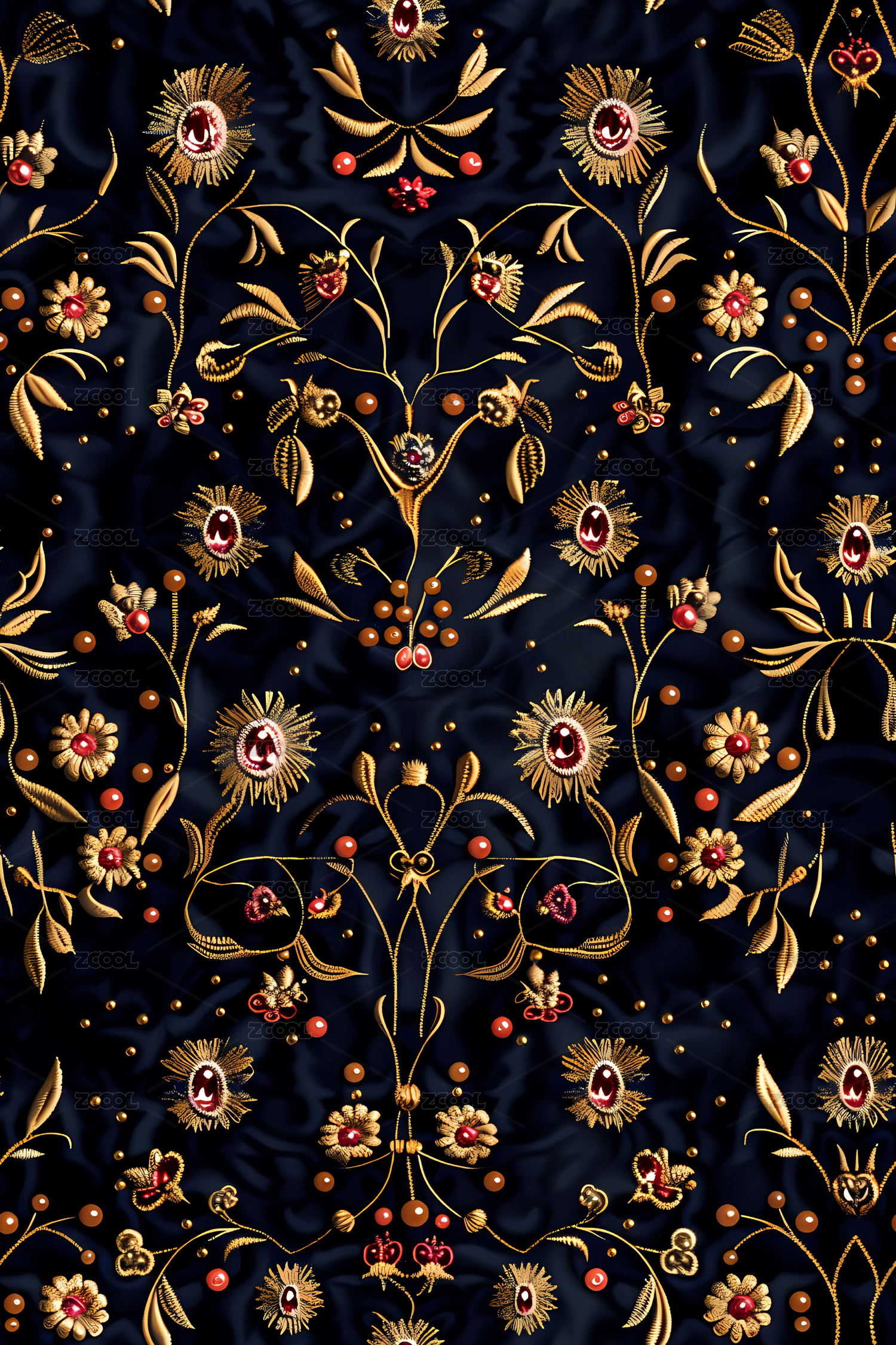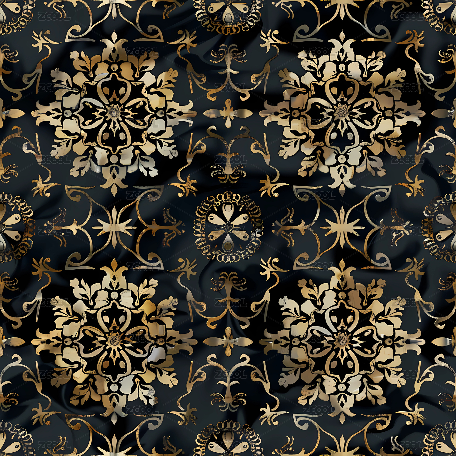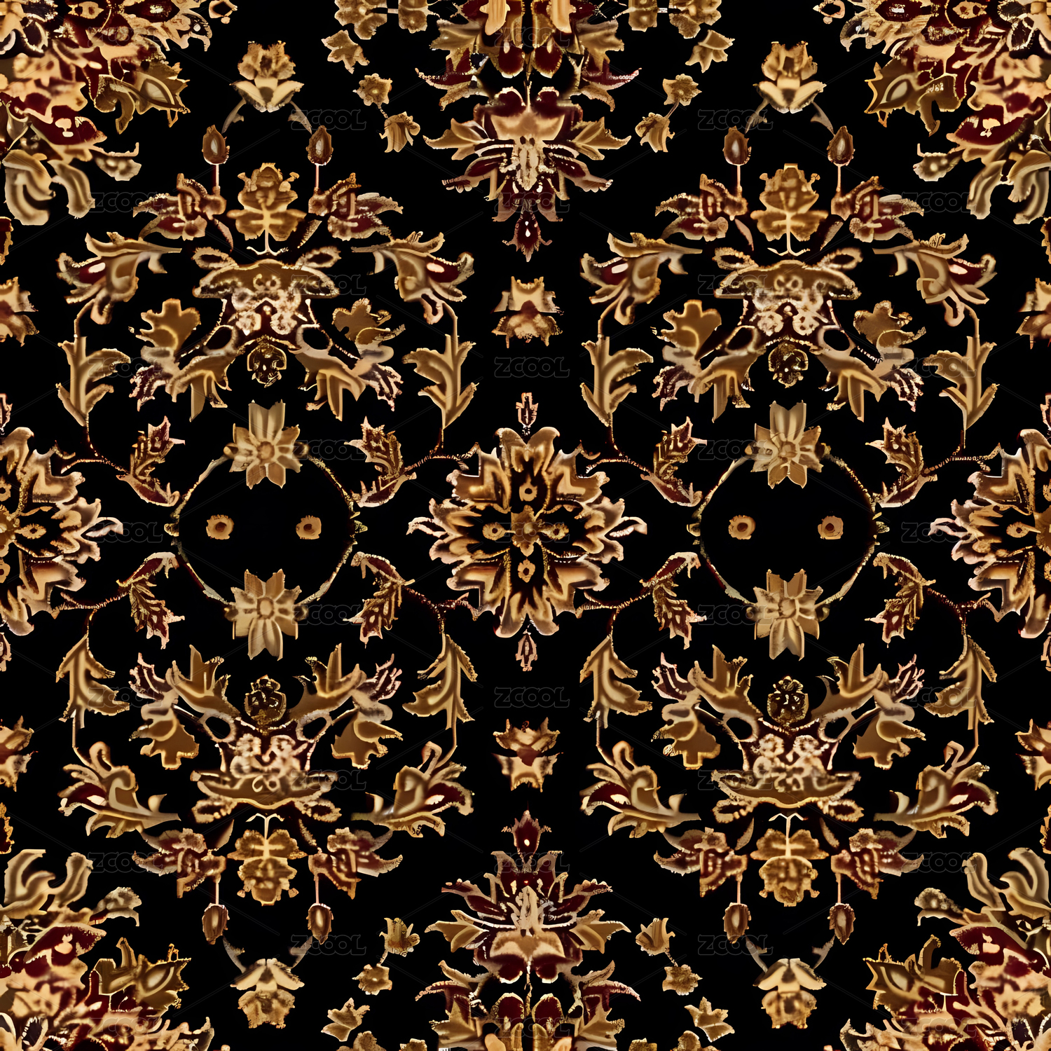 金色对称花纹印花