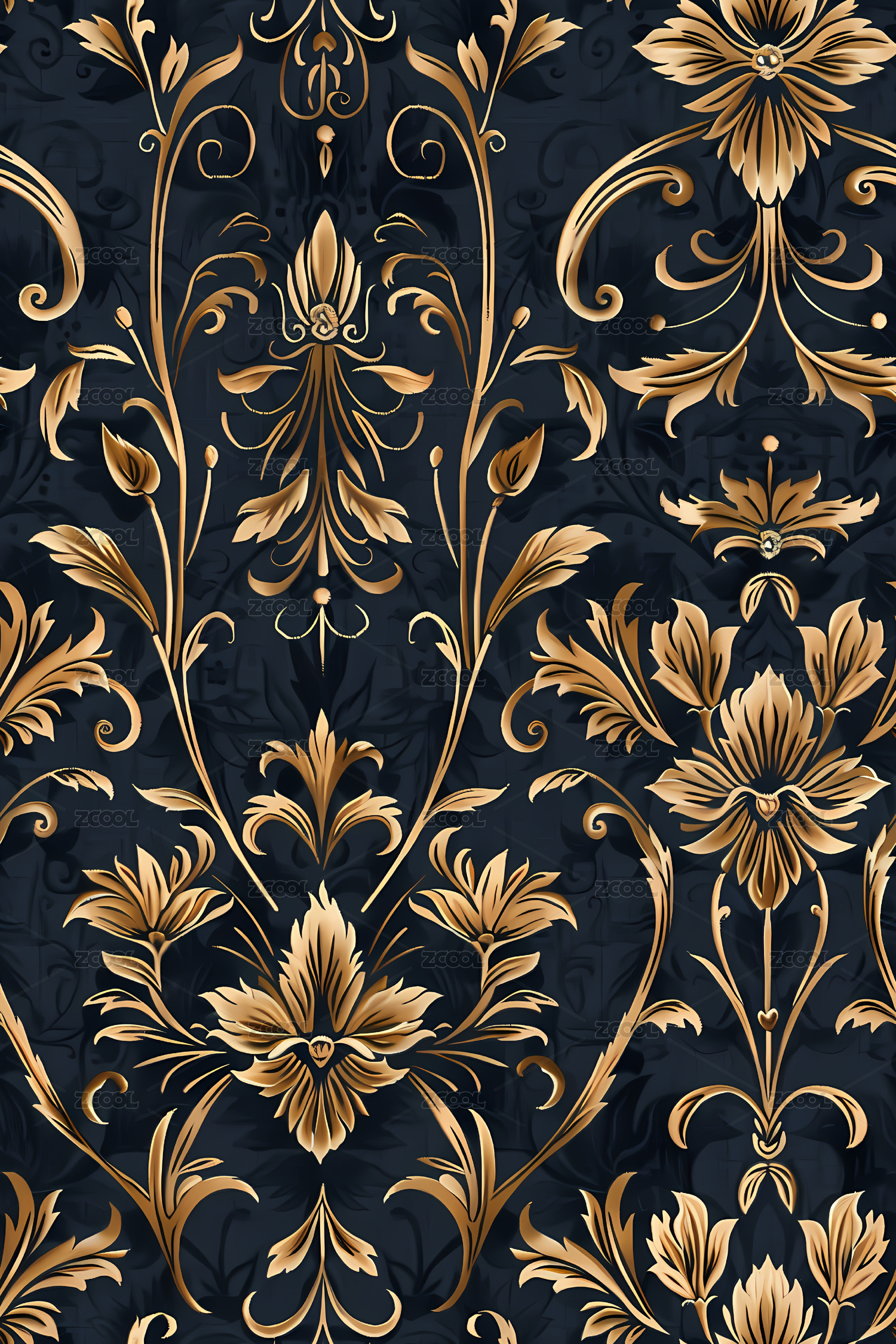 烫金宫廷复古花纹壁纸
