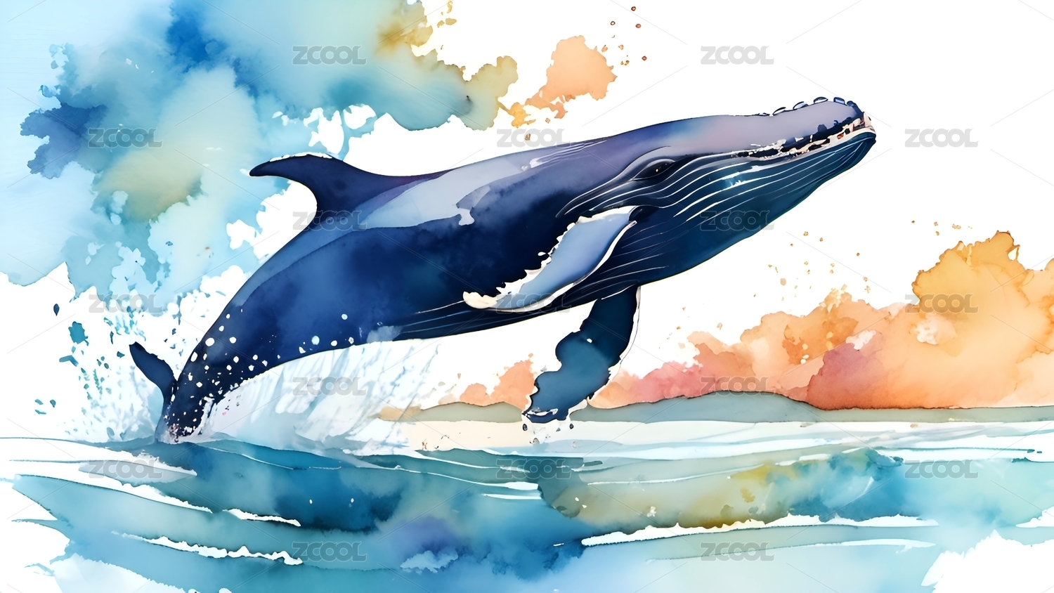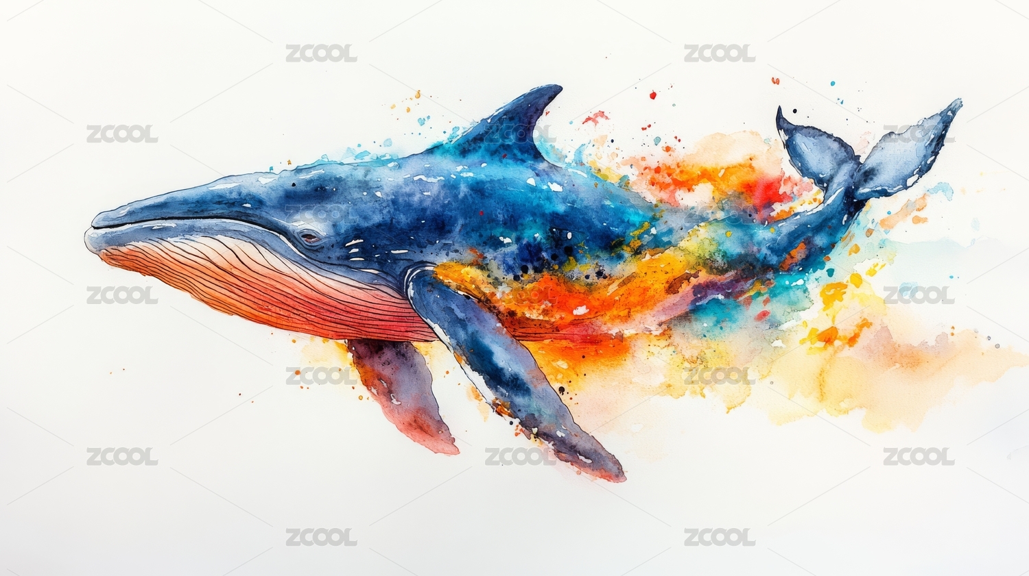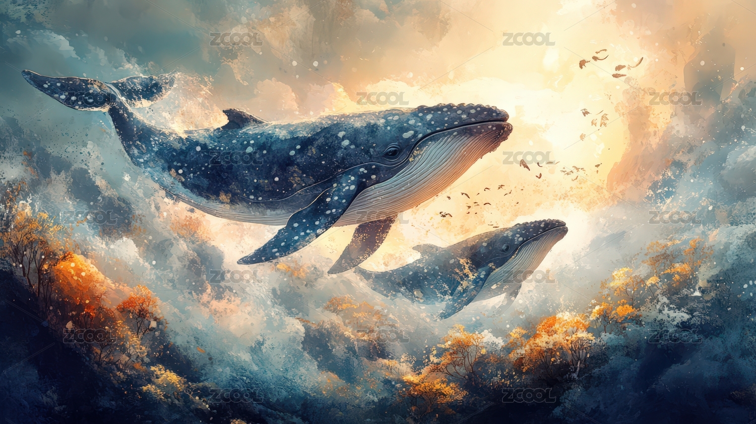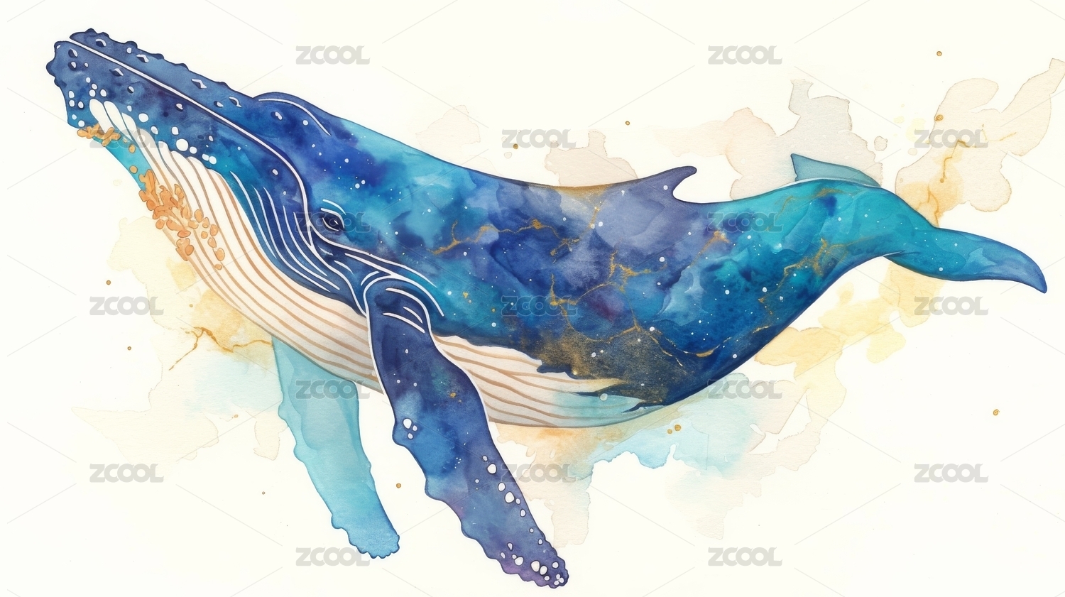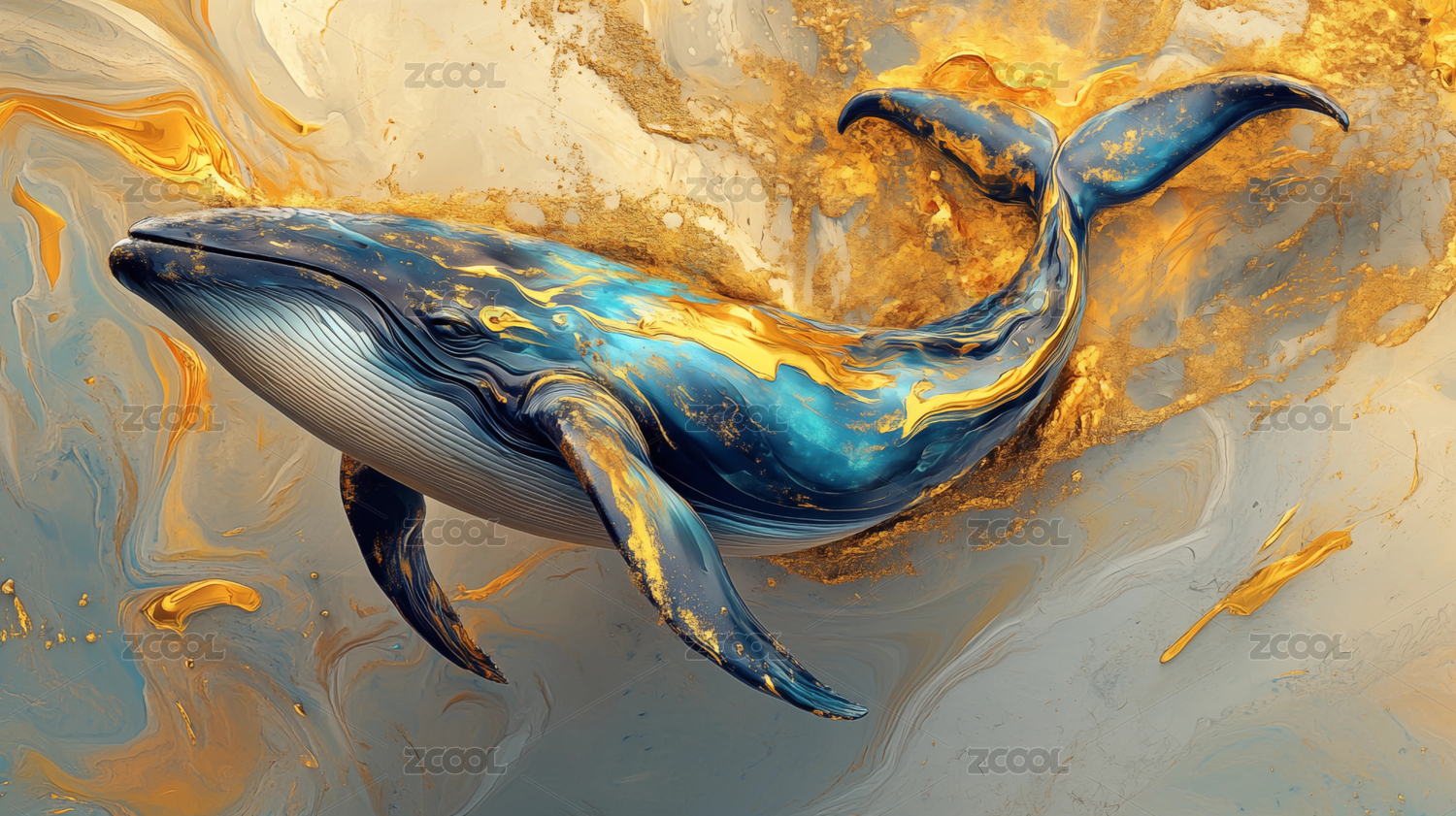 漂亮的高级金沙油漆质感艺术感鲸鱼插画