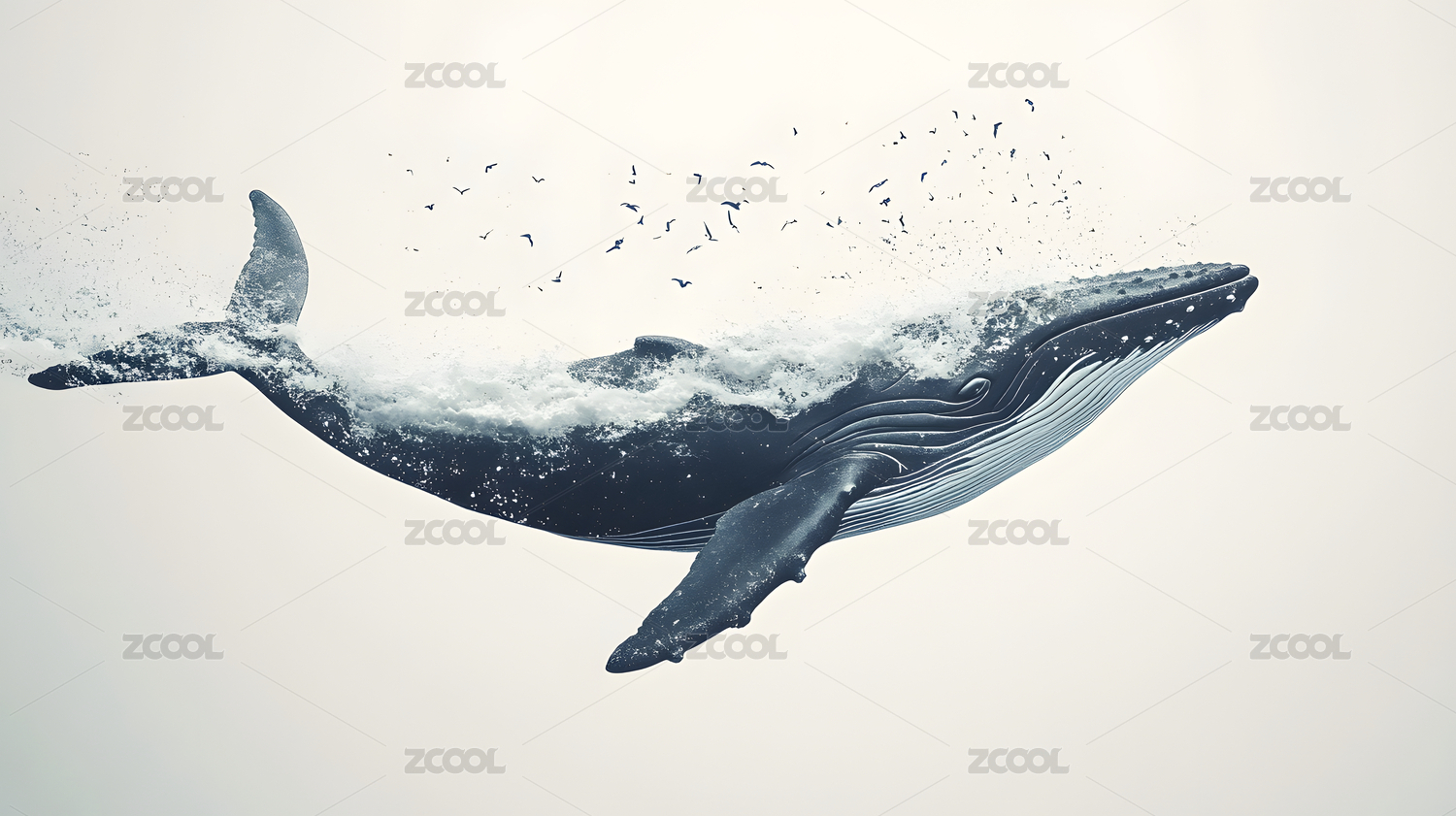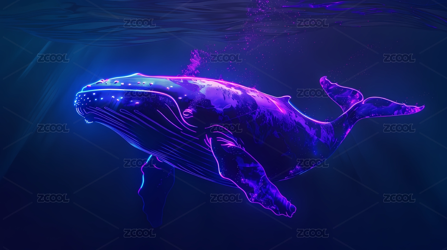科技感鲸鱼徜徉在数据深海中的极简插画