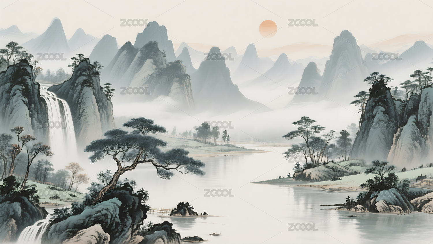水墨风意境山水画中国风写意山水画背景