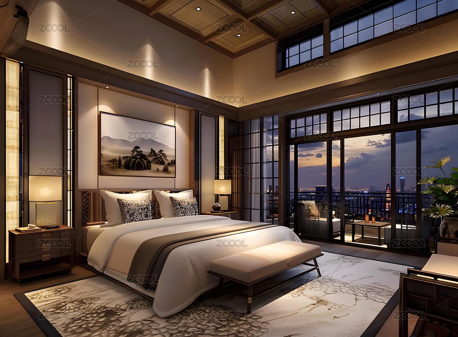 卧室,日式,风格,现代,蓝色,床单,木质,家具,自然,光线