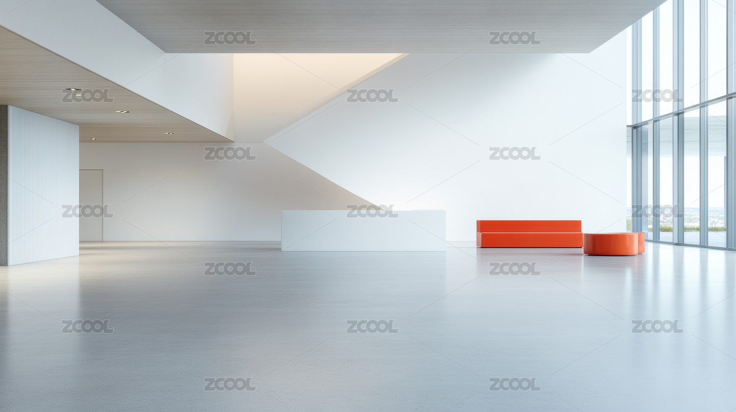 办公室,室内,设计,现代,白色,墙壁,沙发,桌子,植物,管道