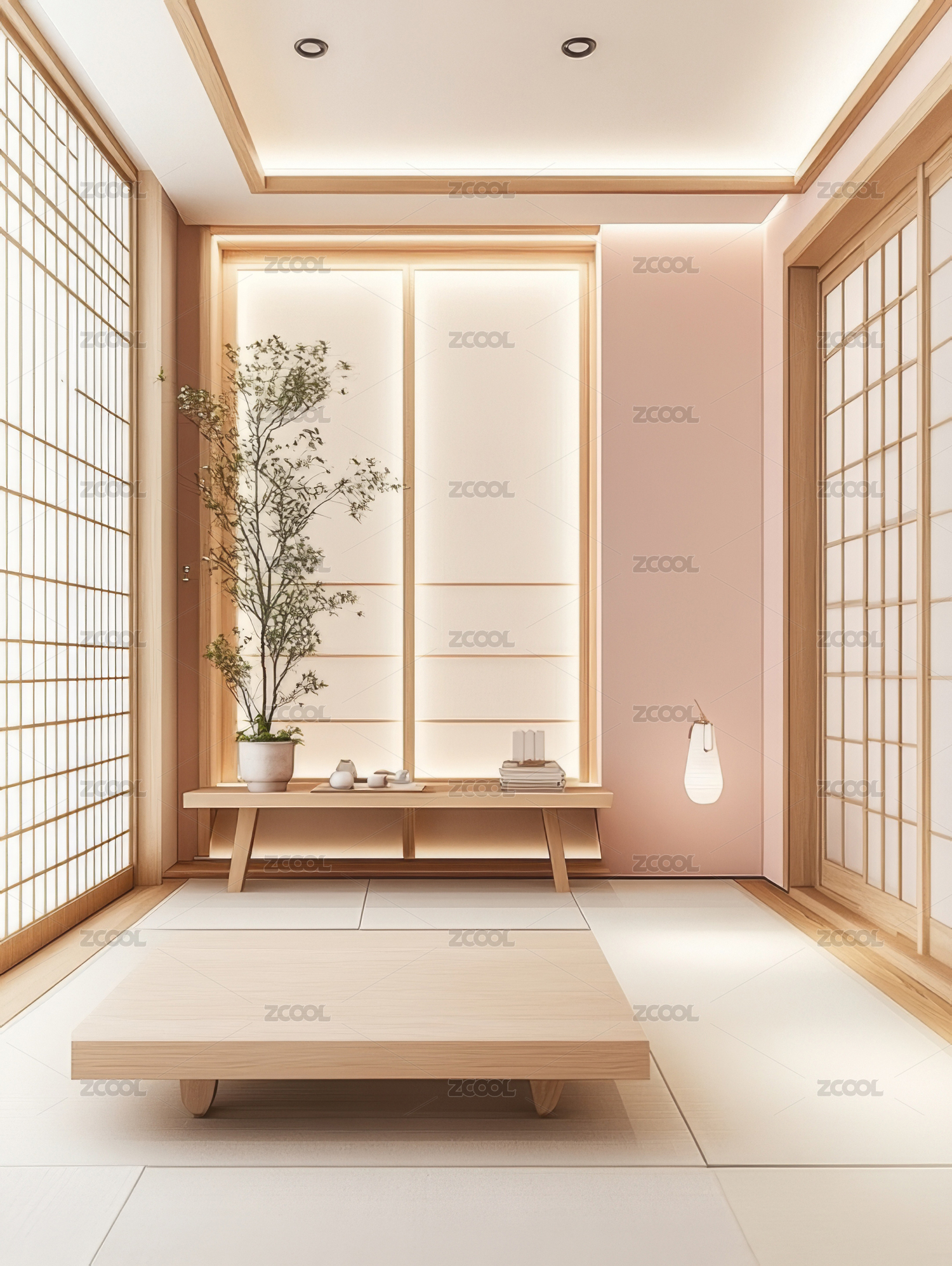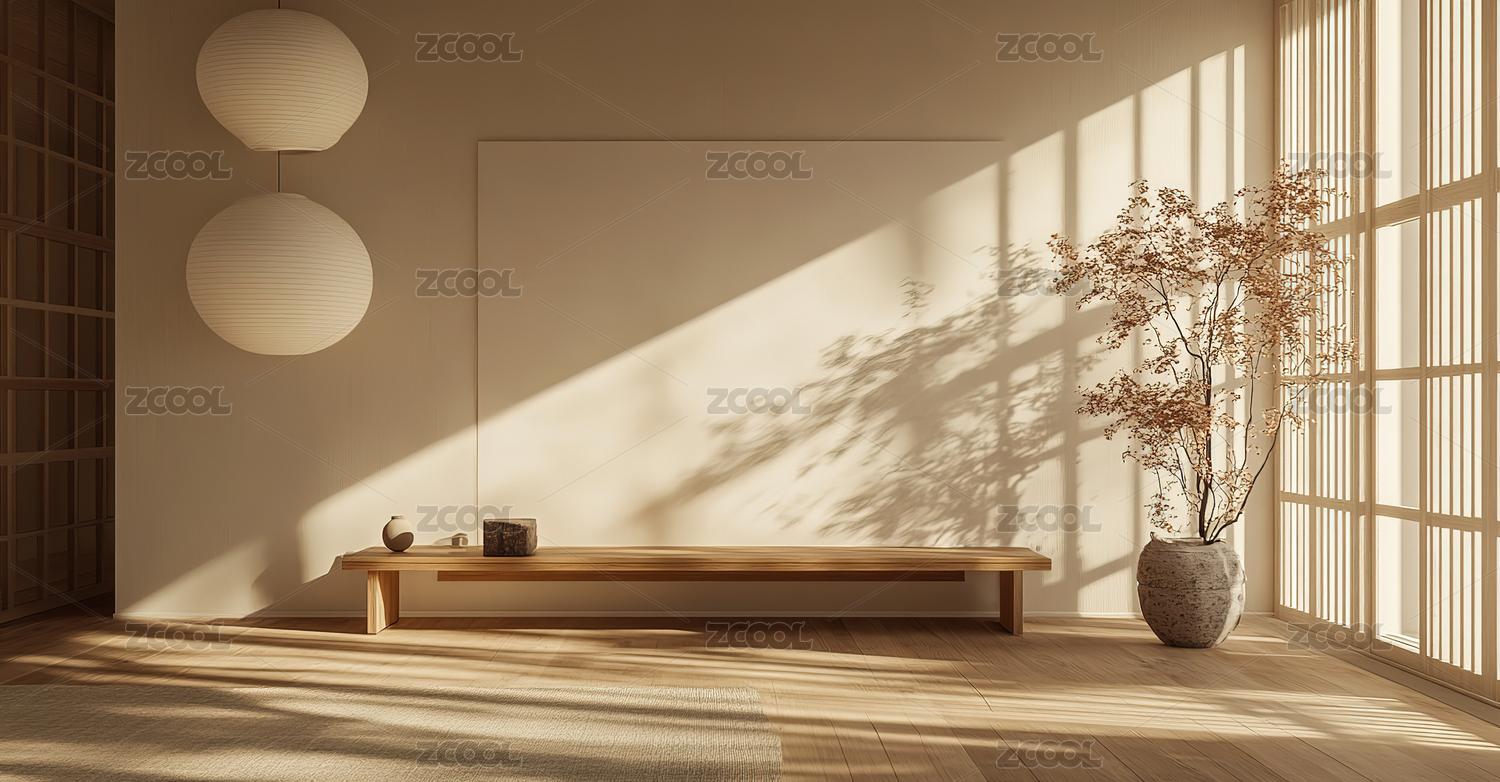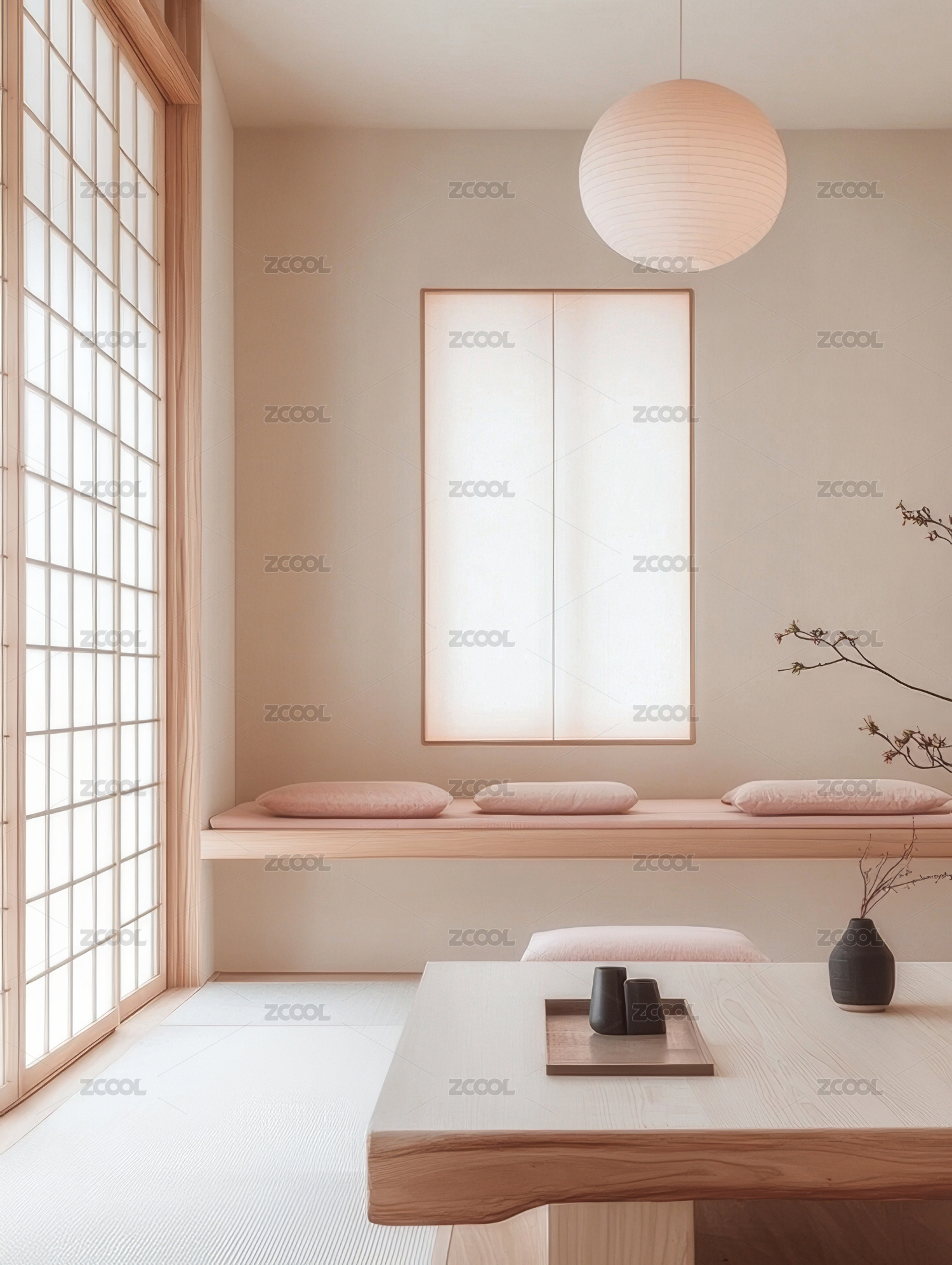 日式,简约,室内,设计,花瓶,枕头,木质,地板,榻榻米,自然光