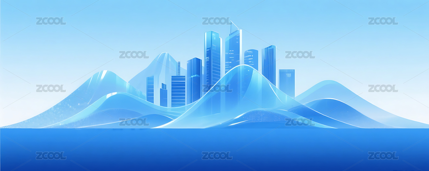 蓝色渐变简约半透明城市建筑山峰背景