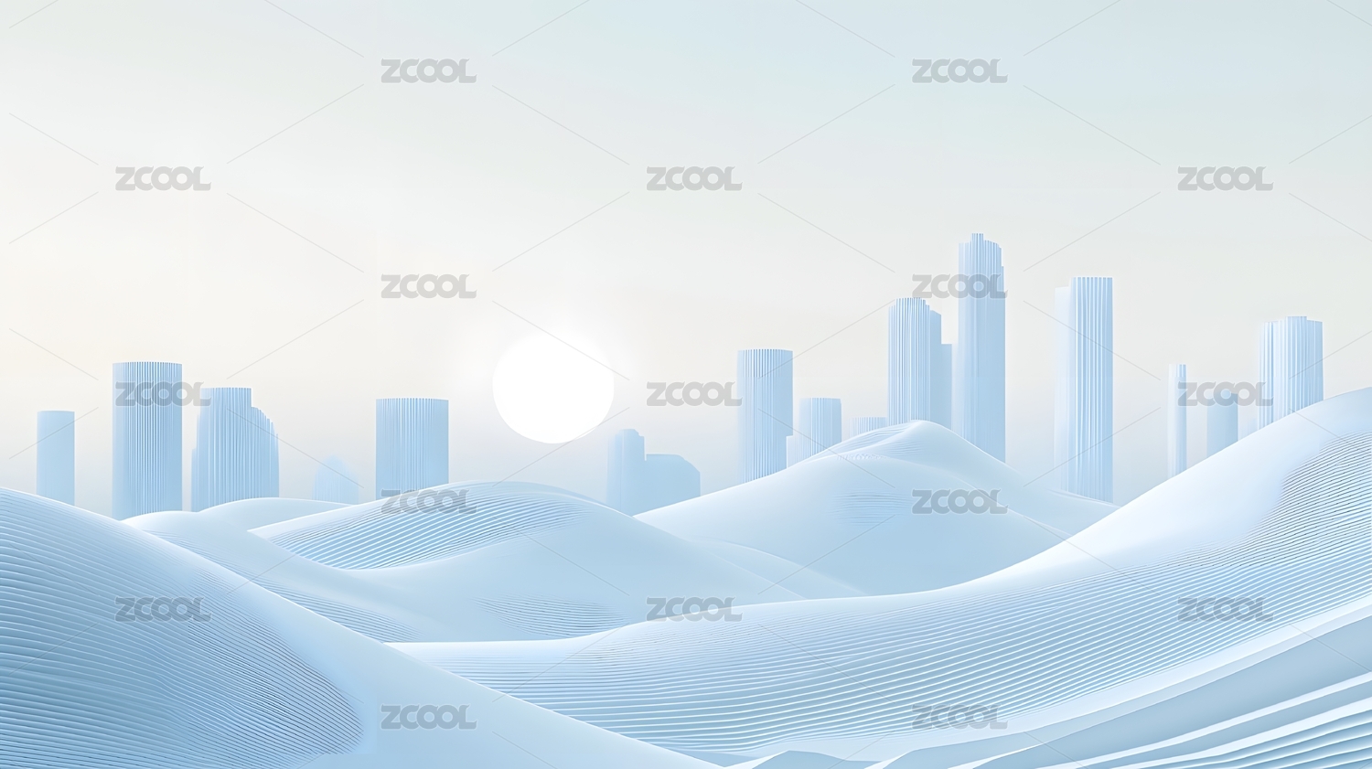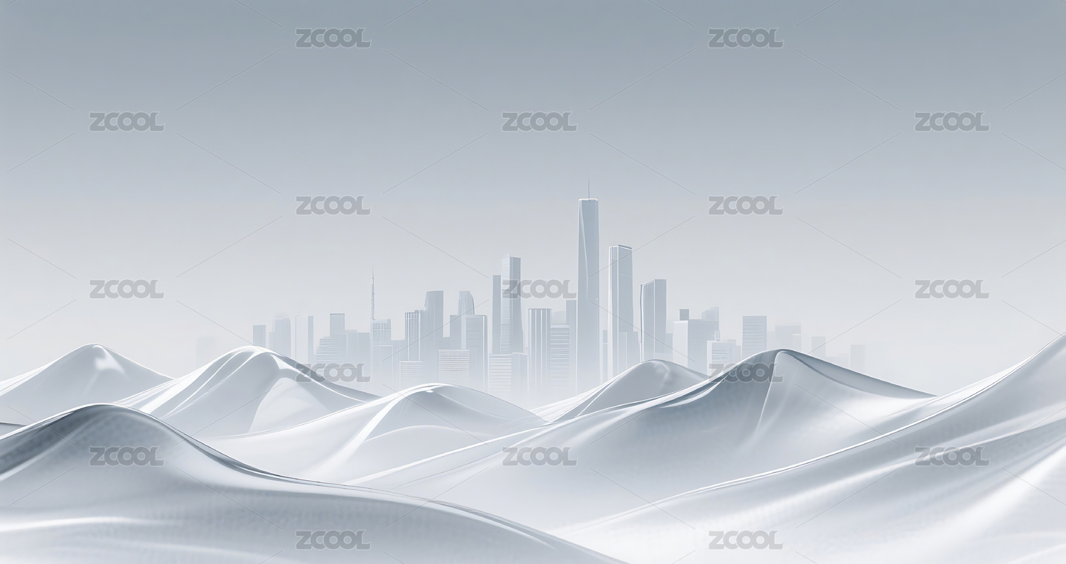 银色流动轻质山水城市建筑天际线背景