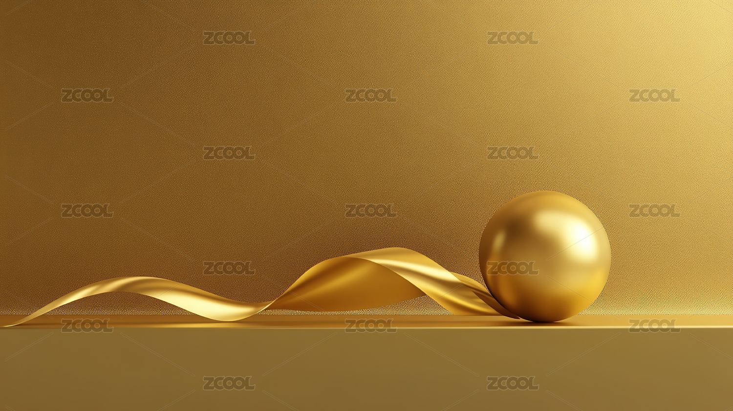 金色球体与白色带子的抽象艺术