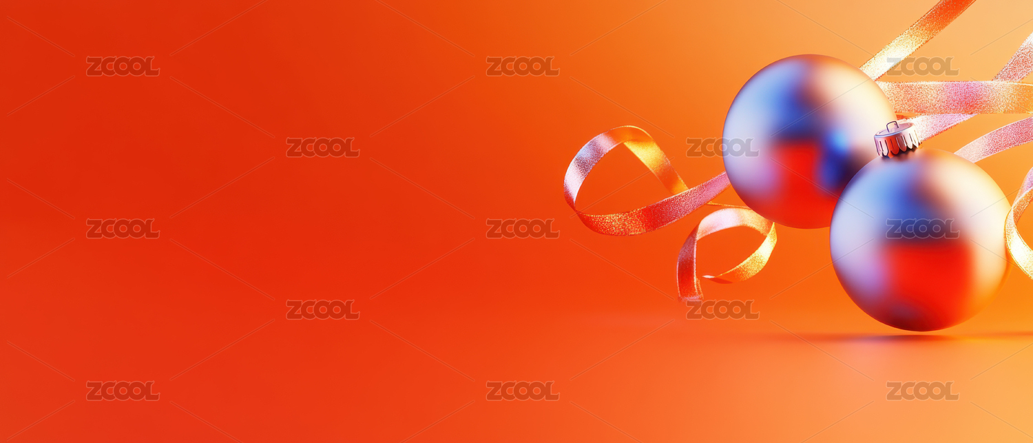 橙色背景上的圣诞装饰球