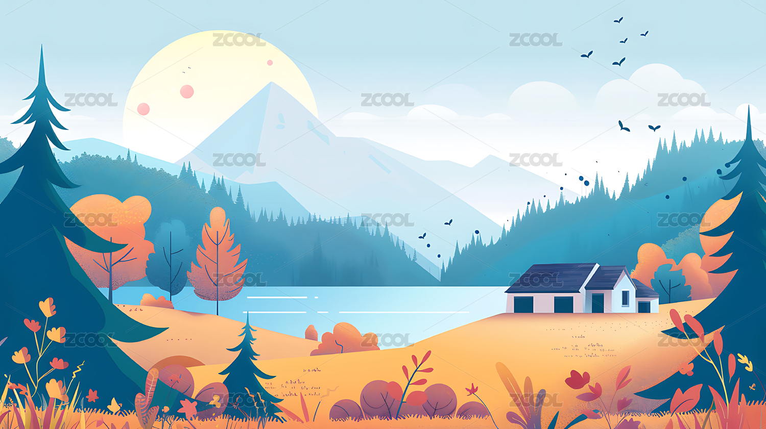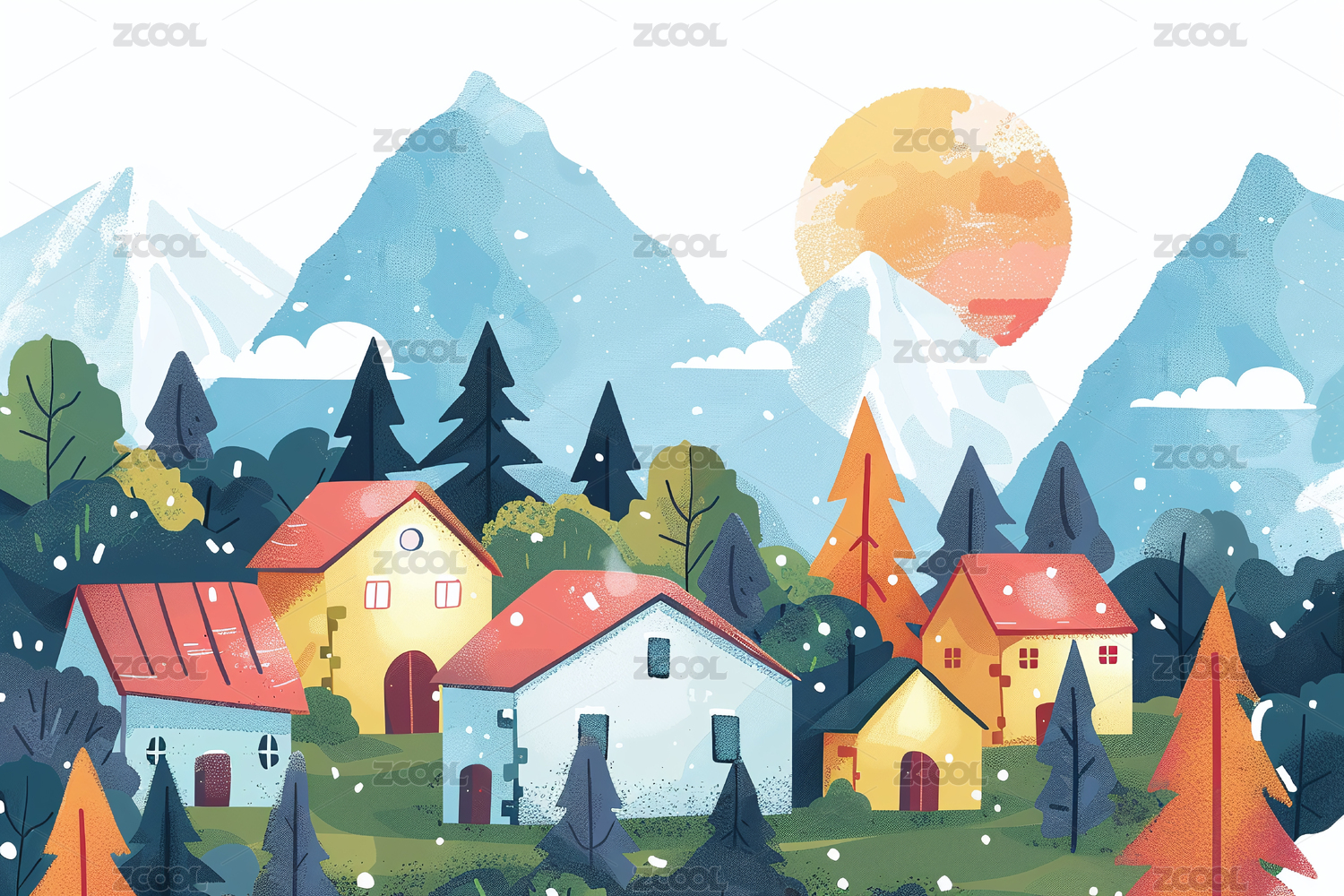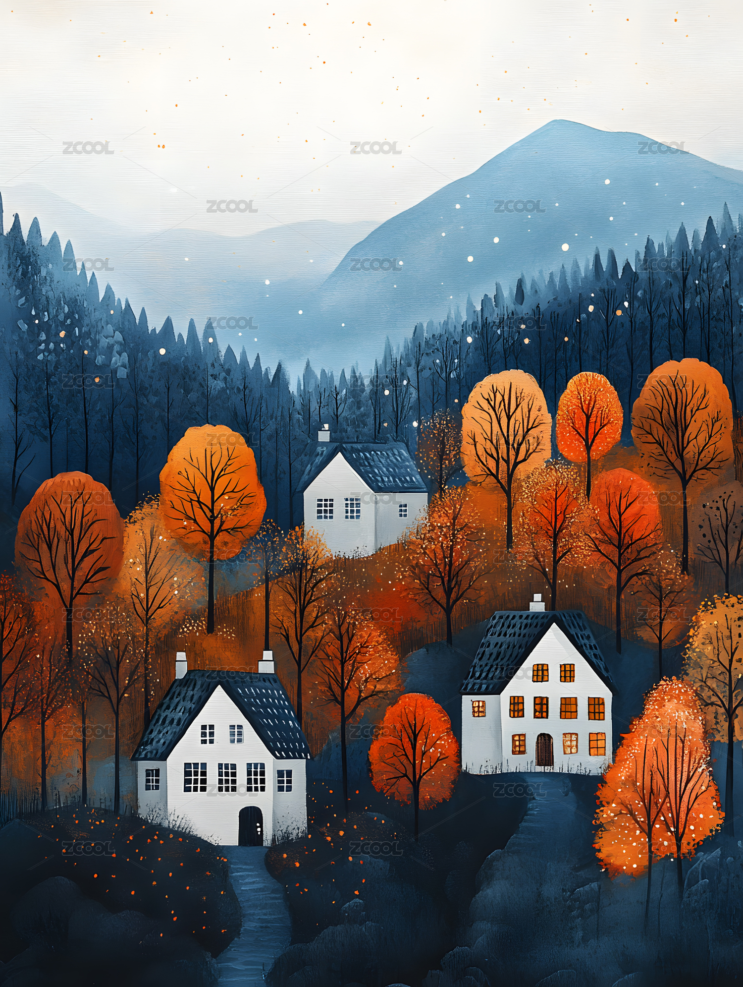 艺术, 背景, 星星, 水彩, 月亮, 宁静, 南瓜, 秋天, 村庄, 森林