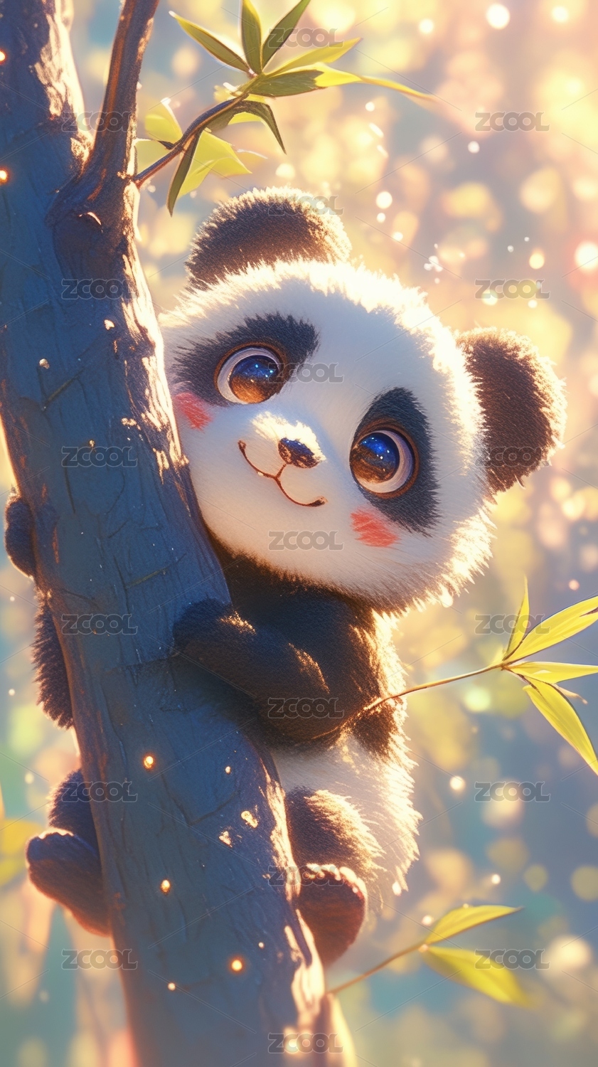 可爱治愈野外竹林的国宝大熊猫3D卡通插画