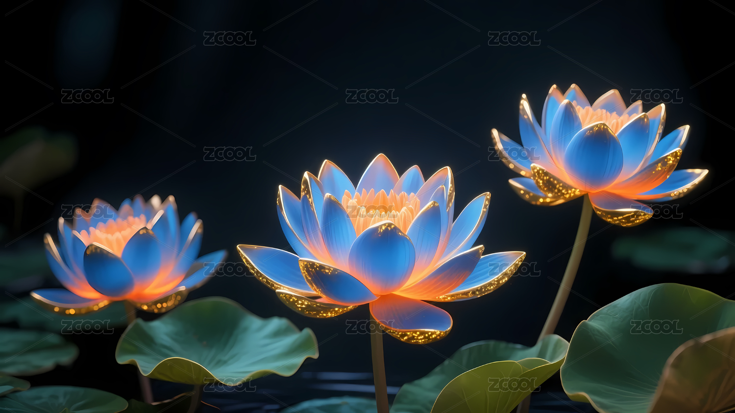 魔法发光睡莲在水塘中美丽盛开的特写插图