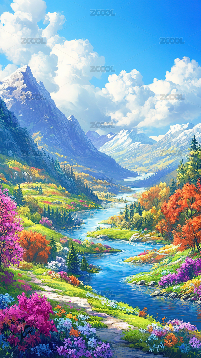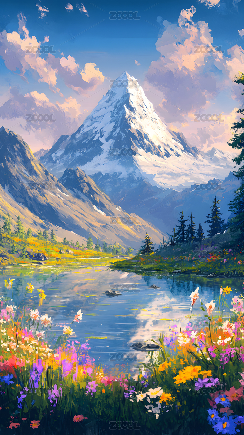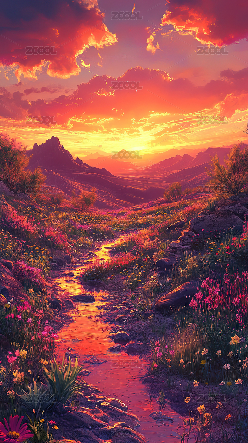 光线,山脉,风景,自然,平静,宁静,天空,云彩,梦幻,水彩